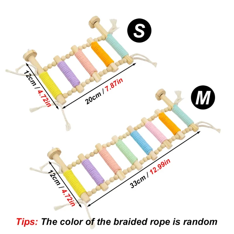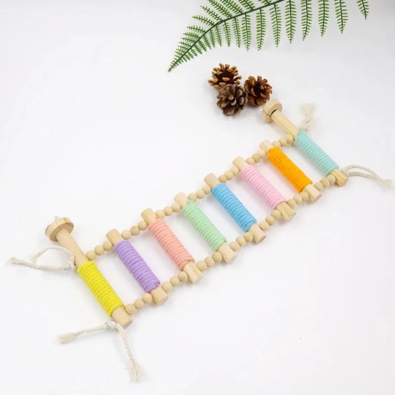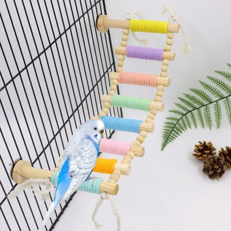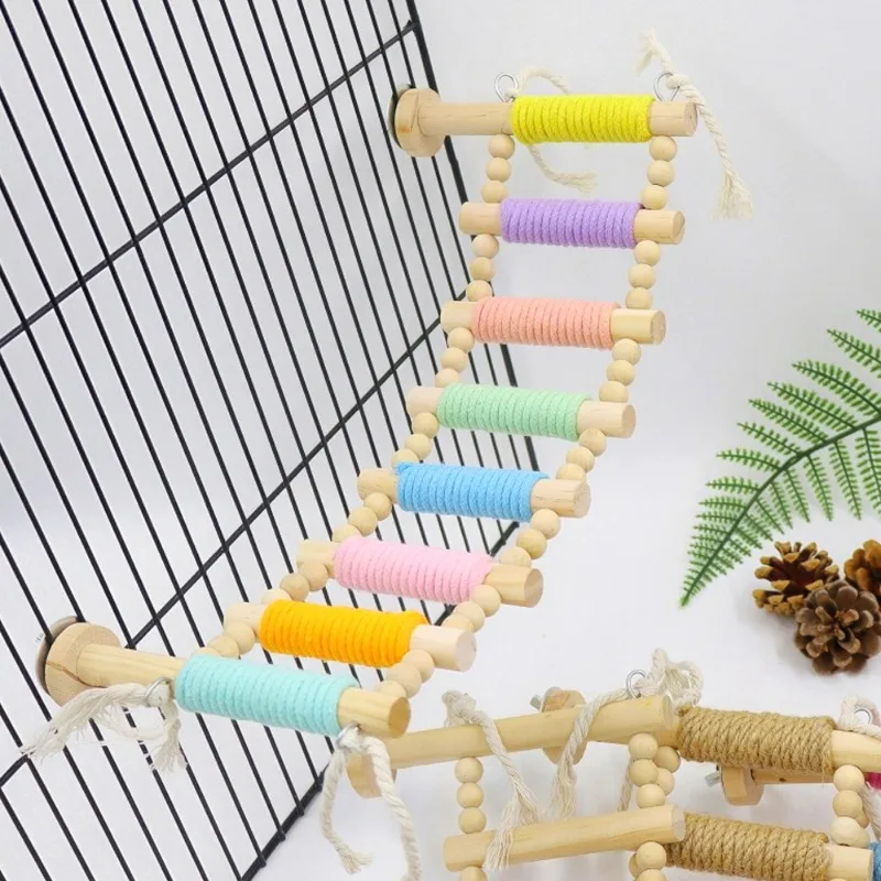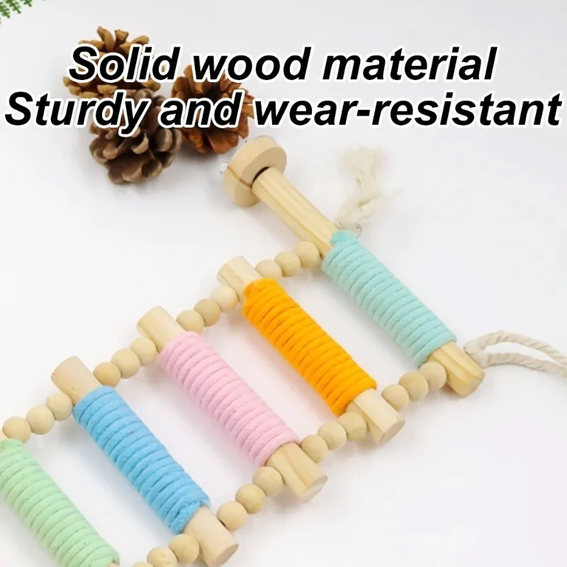 Escalera de madera de 5/8 escalones para mascotas, juguete interactivo para loros y pájaros, jaula para hámster, palo de molienda divertido, juguete de escalada, accesorios para pájaros