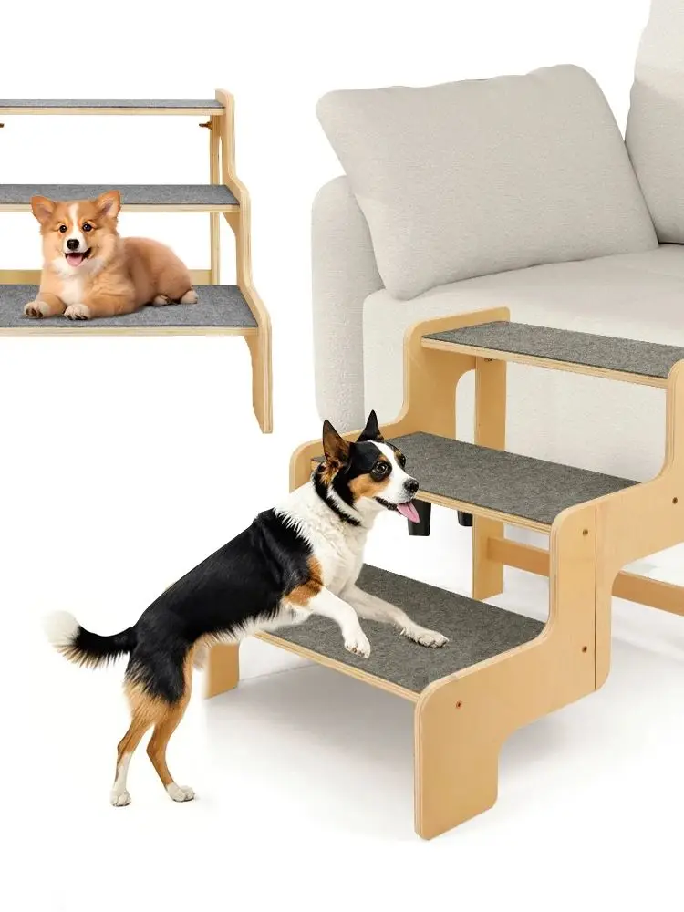 Escalera de madera para mascotas, escalón para perros, antideslizante, ligero, suministros para mascotas para cama, escalera para perros para gatos mayores, otras mascotas pequeñas, gatitos en interiores