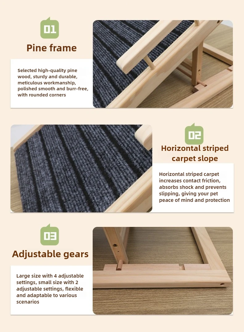 Escalera para mascotas de madera maciza, escaleras plegables para cachorros, altura ajustable, accesorios para perros, rampas de coche, suministros para productos de escaleras para perros pequeños