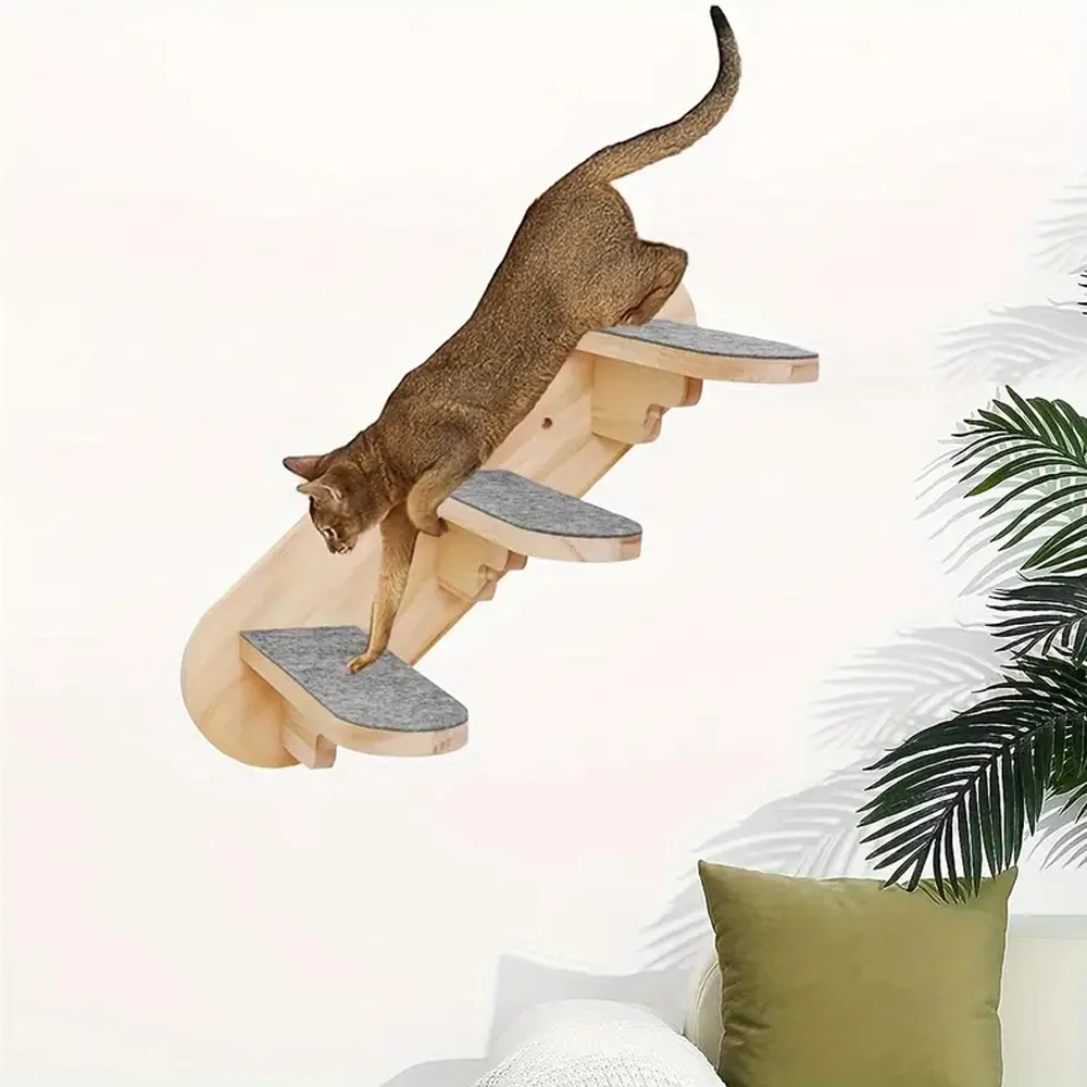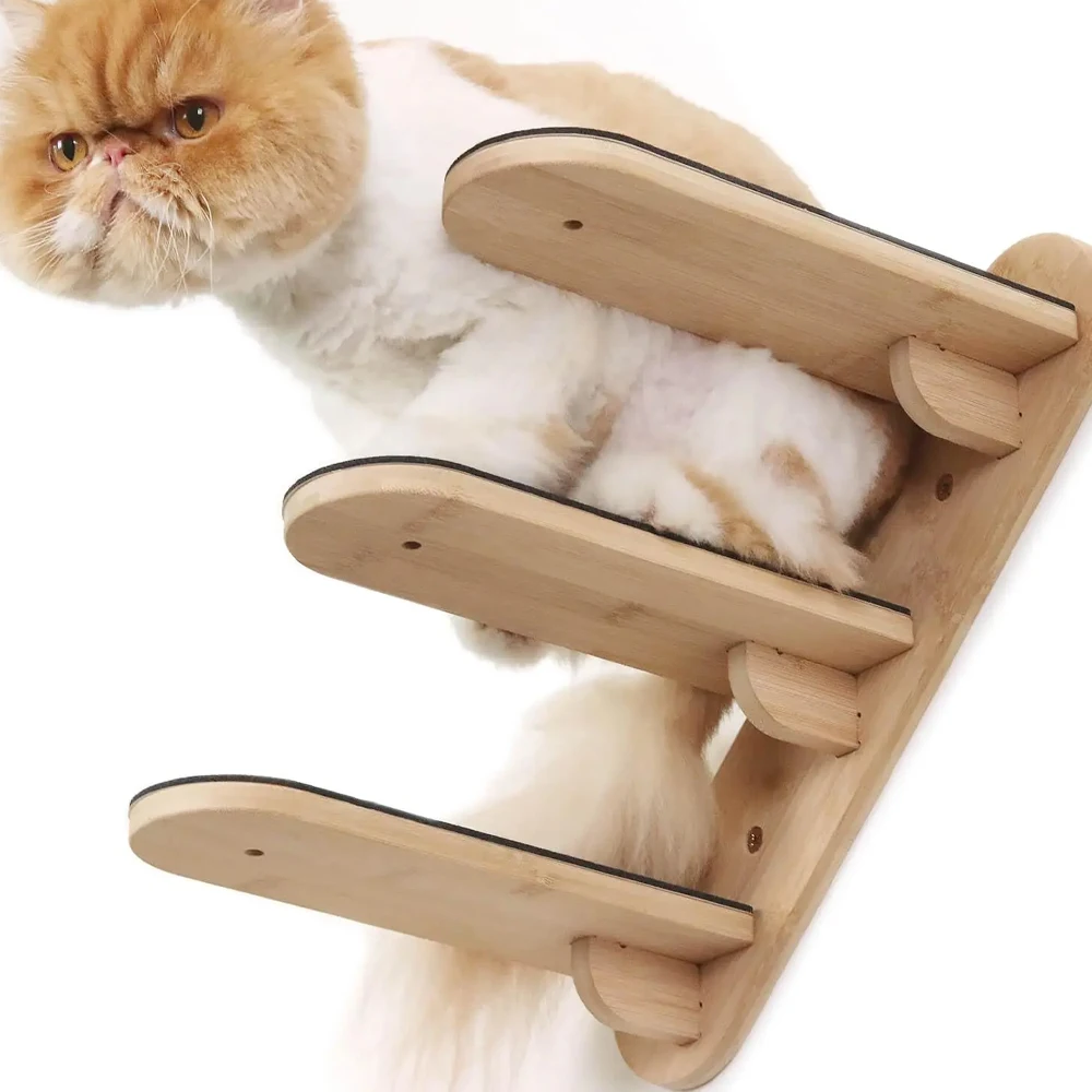 A los gatos de forma natural como la escalada y los lugares altos. Las escaleras montadas en la pared aprovechan al máximo el espacio vertical del hogar para crear un camino de actividad tridimensional para los gatos, satisfaciendo su instinto natural para explorar lugares altos, permitiendo a los gatos moverse libremente entre diferentes alturas y aumentando la diversión de la vida.