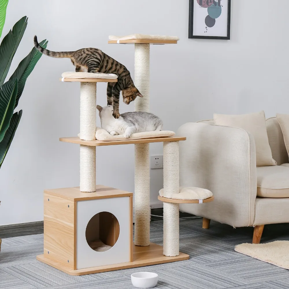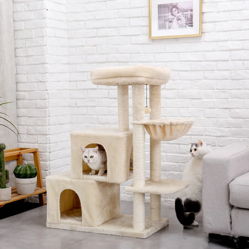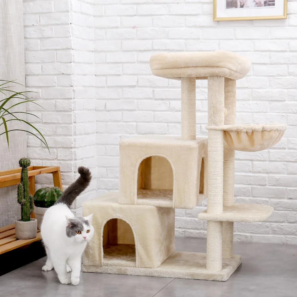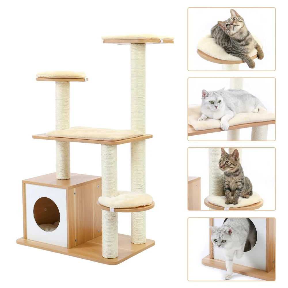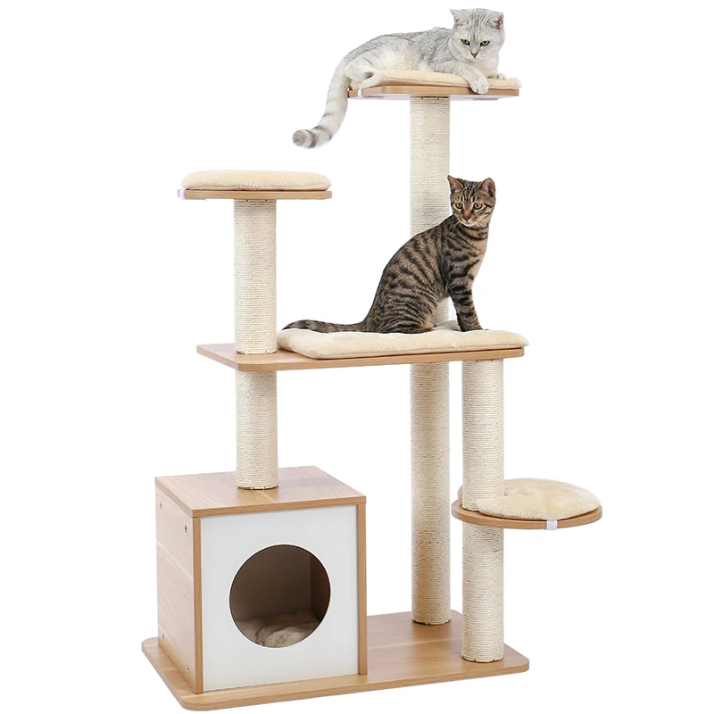 Escaleras de varios niveles para perro gato casa del árbol Cando postes de rascado de sisal Natural para gatito torre de mascotas con cama acogedora cama de paso de cachorro