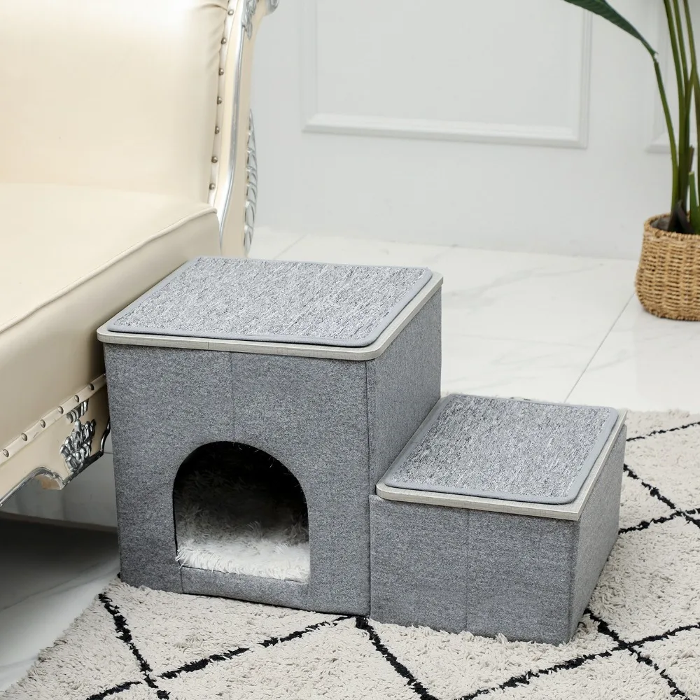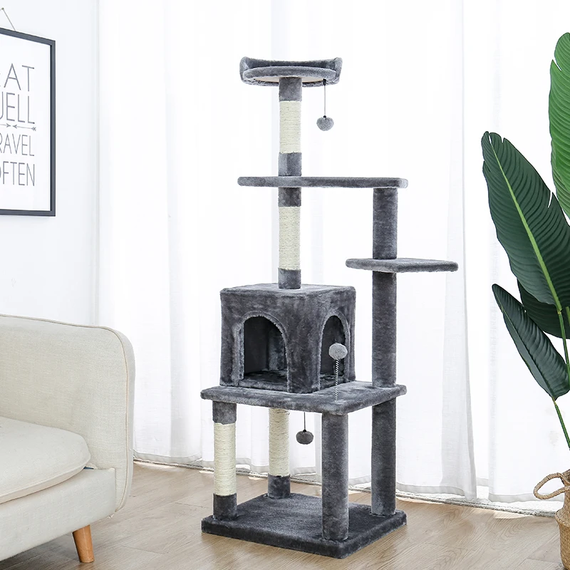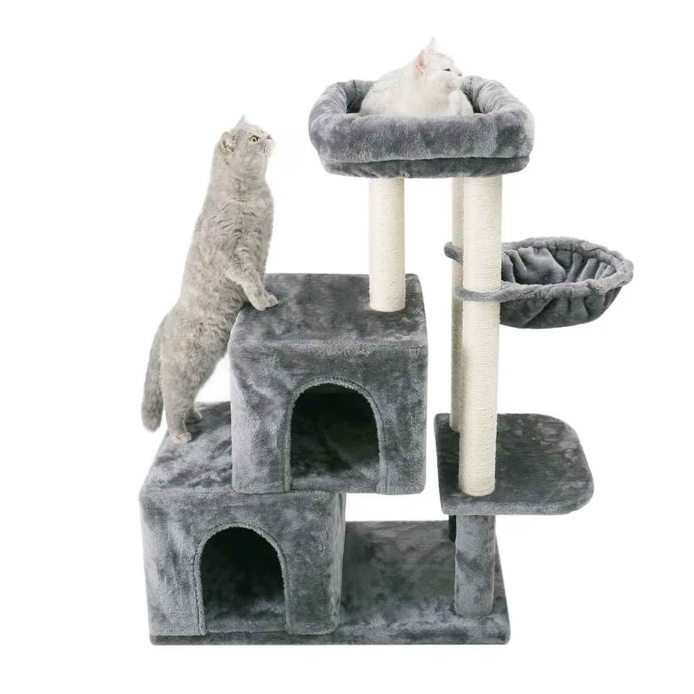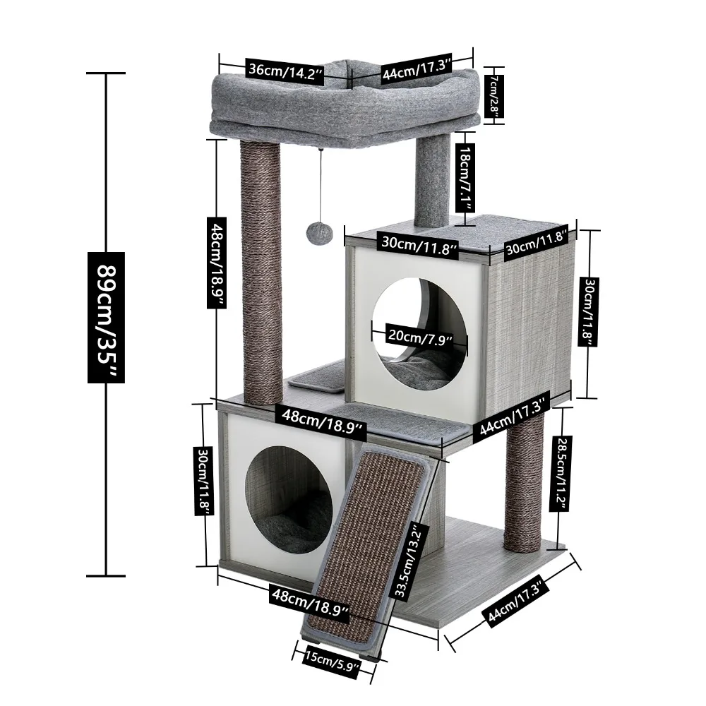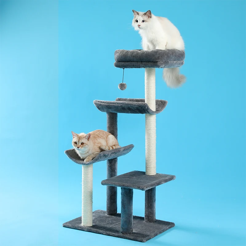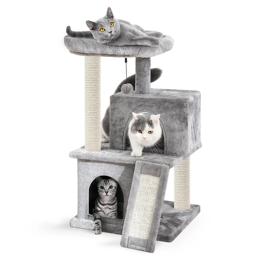 Escaleras de varios niveles para perro gato casa del árbol Cando postes de rascado de sisal Natural para gatito torre de mascotas con cama acogedora cama de paso de cachorro