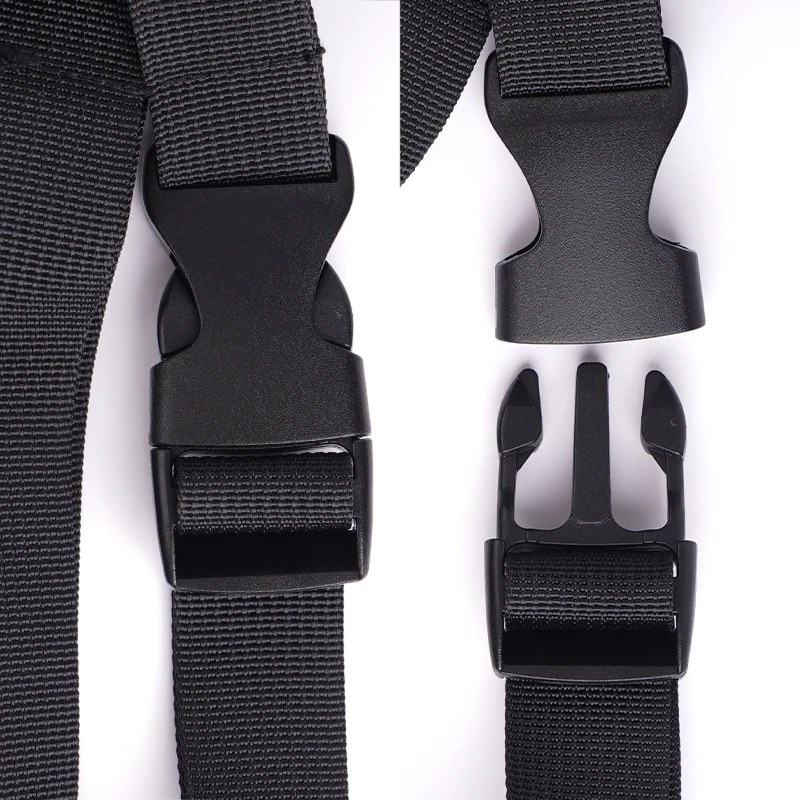 Incluye correas de nailon reforzado, anillos en D metálicos de montaje, refuerzo de material para un uso eficiente.