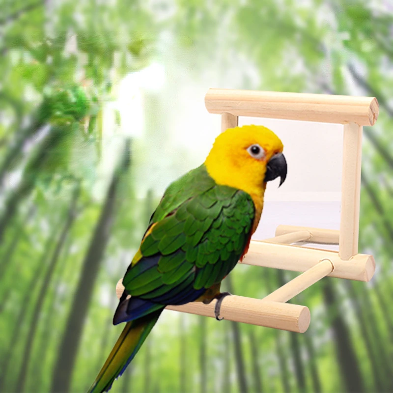 Juguete de madera para mascotas, espejo, divertido juguete de novia para parejas, pájaros pequeños, loro, juguetes, loros para mascotas, accesorios para subirSoporte de espejo para pájaros, juguete de entrenamiento, plataforma de madera para loros, jaula para pájaros, accesorios, juguetes naturales para mascotas pequeñas, suministros de Budgerigar, Cockatiel