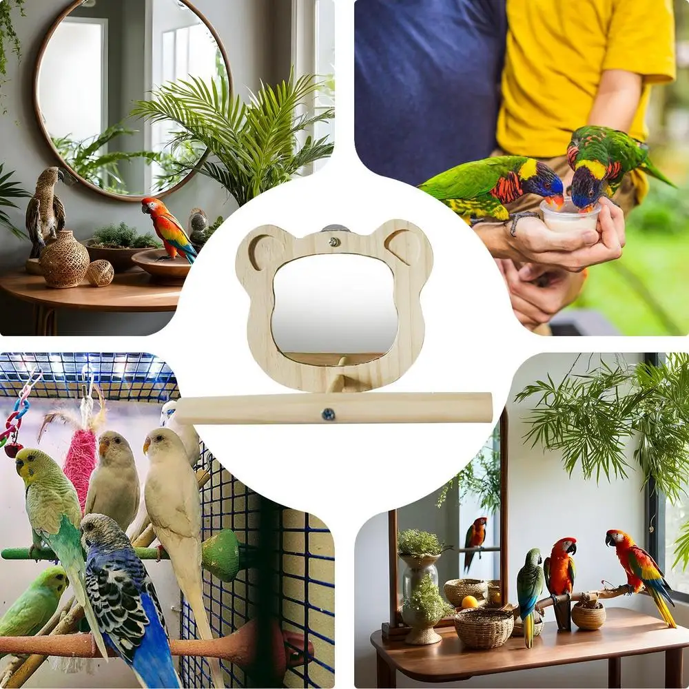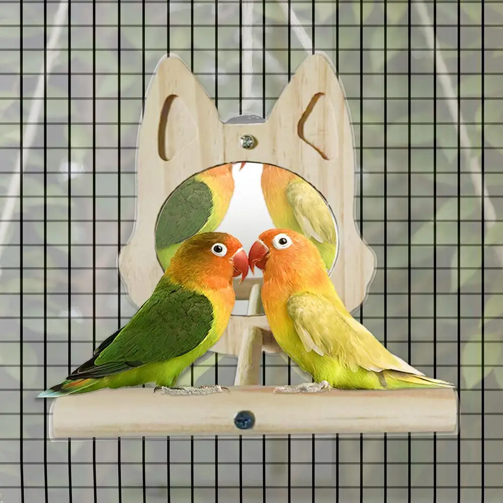 2. Uso a largo plazo: Construido con un marco de madera natural y un excelente espejo acrílico, este espejo ligero para pájaros con perca garantiza la longevidad.Su robusto soporte puede soportar las actividades diarias de los loros, garantizando un uso seguro y duradero.