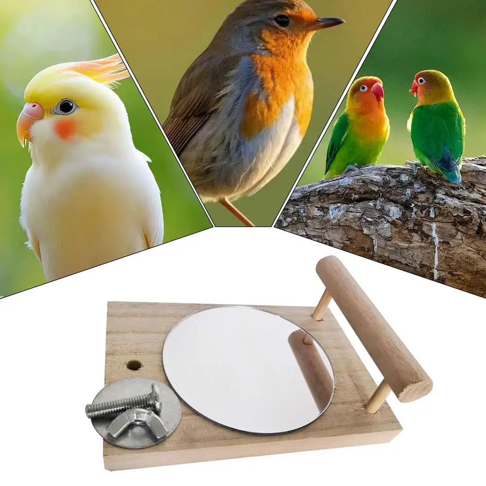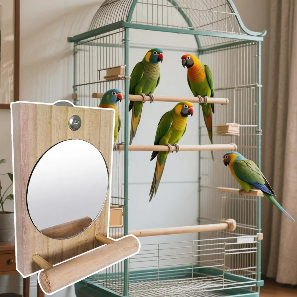 4. Promotor de actividad atractiva: con ángulos de visión ajustables y una concentración de prevención del aburrimiento, el espejo para pájaros incorpora un soporte para percas de ejercicio para estimular el movimiento y fomentar el juego activo de los pájaros.