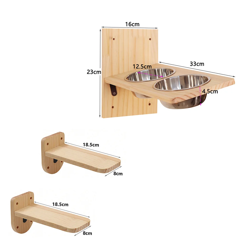 Estación de alimentación para gatos montada en la pared con cuencos dobles de acero inoxidable, percha para gatos, comedero y plataforma de escalada, muebles para gatos de interior