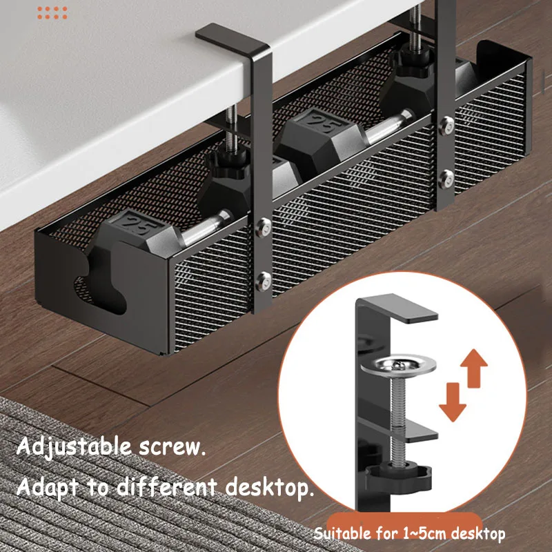 Estante de almacenamiento debajo de la mesa, bandeja de gestión de cables de Metal, organizador de cables para escritorio de oficina en casa, sin perforaciones, accesorios de almacenamiento de cocina