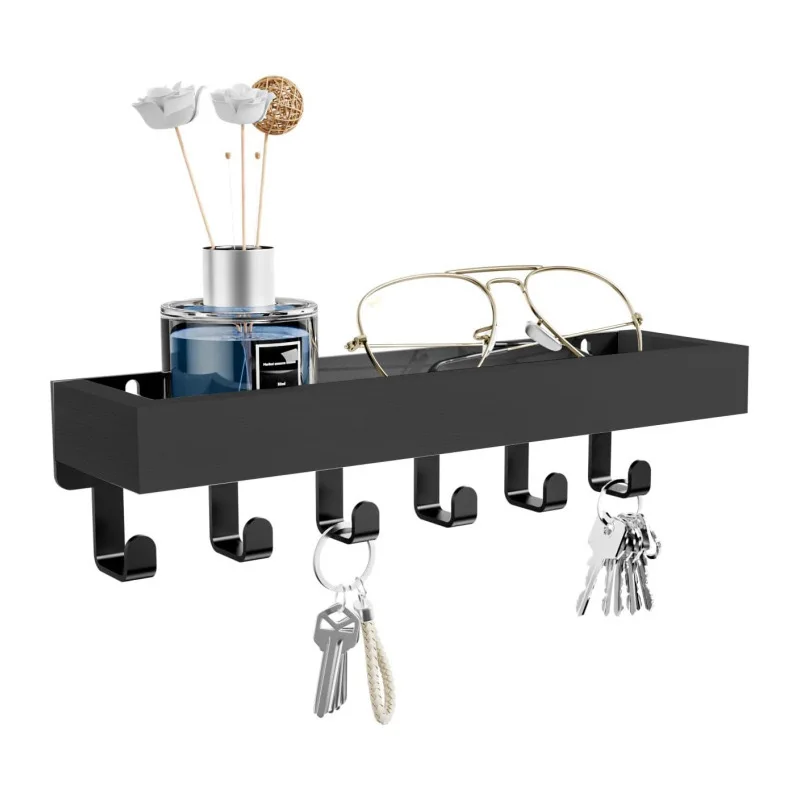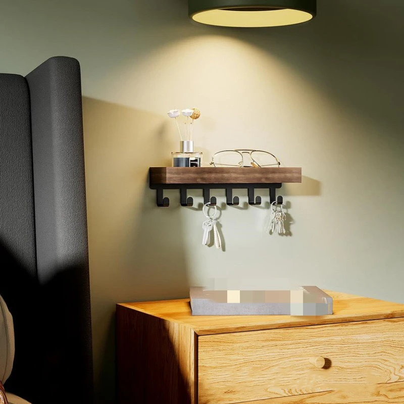 Estante de almacenamiento de montaje en pared, estante flotante de madera, soporte para plantas, carrito de ducha, soporte de organización cosmética, perchas para llaves, llave de decoración del hogar