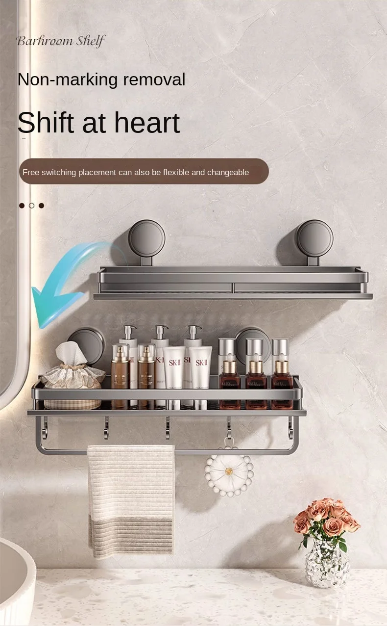 Ventosa Estante de baño Estante de baño Espacio para inodoro Aluminio Estante colgante sin taladro Organizador de baño Colgar en la pared