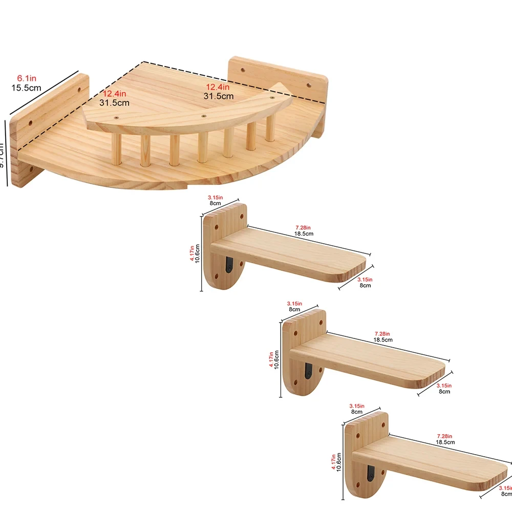 Nuestros muebles de pared para gatos también ahorran especialmente espacio.Para los hogares de pequeño tamaño, el espacio del piso ya es precioso, y este mueble se instala en la pared, sin ocupar espacio en el piso, haciendo que el hogar esté limpio y ordenado.Además, también es una ventaja adicional para la decoración del hogar.La apariencia simple y moderna, ya sea la textura discreta del fieltro o el estilo natural de la madera, puede integrarse fácilmente en varios estilos de decoración del hogar, realzando instantáneamente el estilo de su hogar.