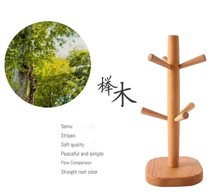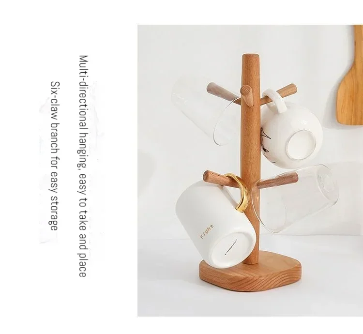 Estante de exhibición colgante para tazas de madera con 6 ganchos, estante para vasos, estante de madera con forma de árbol, soporte para almacenamiento de tazas de café y té, soporte para vasos