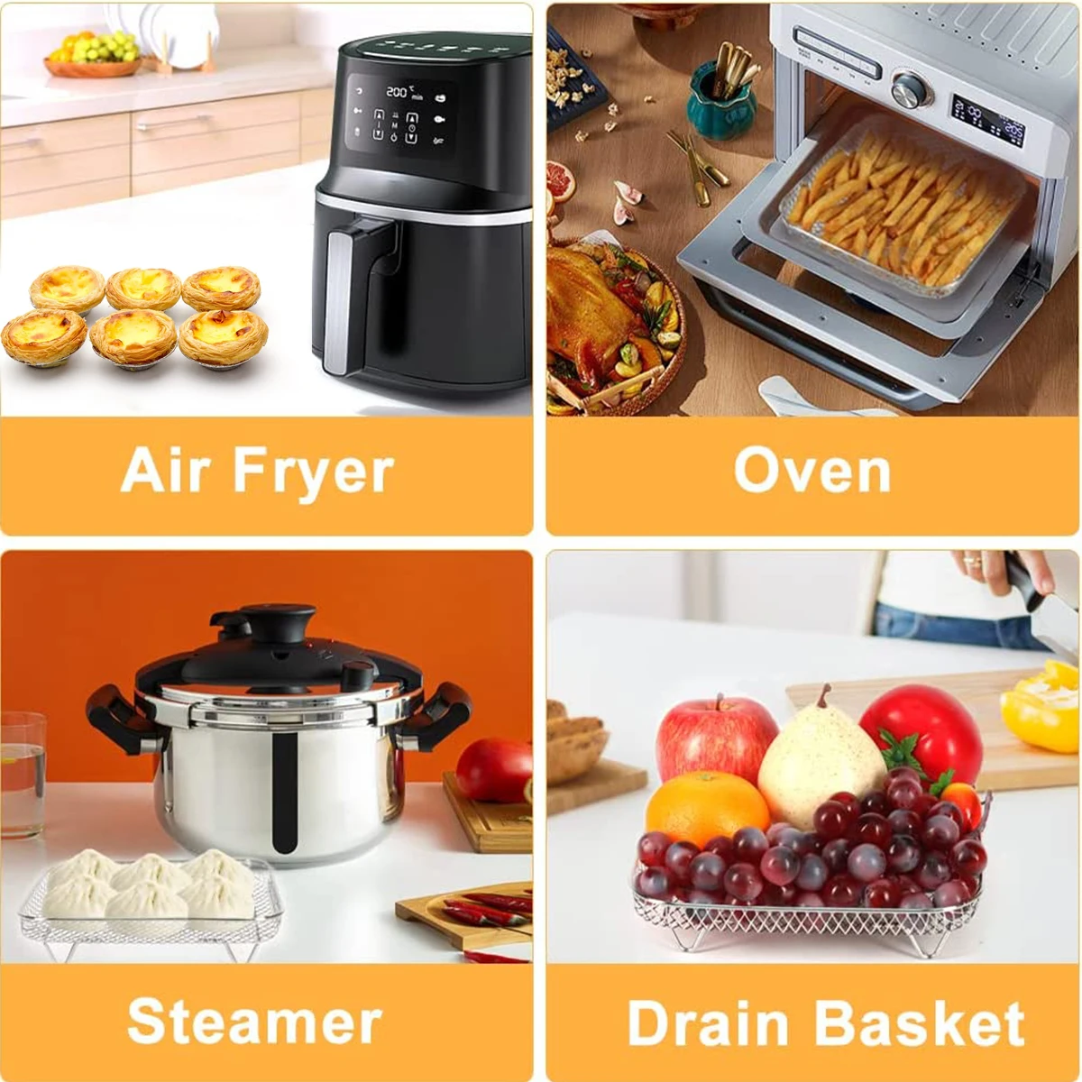 • Adaptable a su cocina:Estas trayas son compatibles con la mayoría de las secadoras y secadoras de aire, lo que las hace perfectas para su cocina.