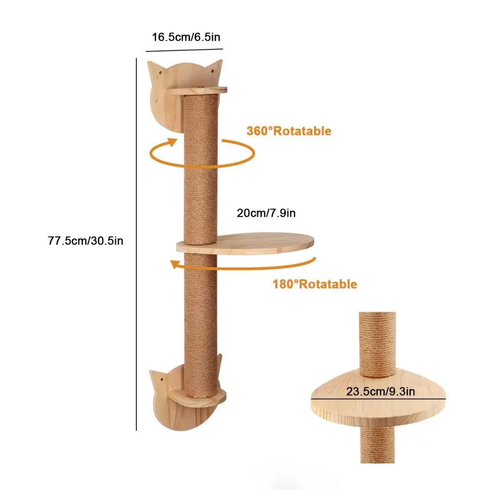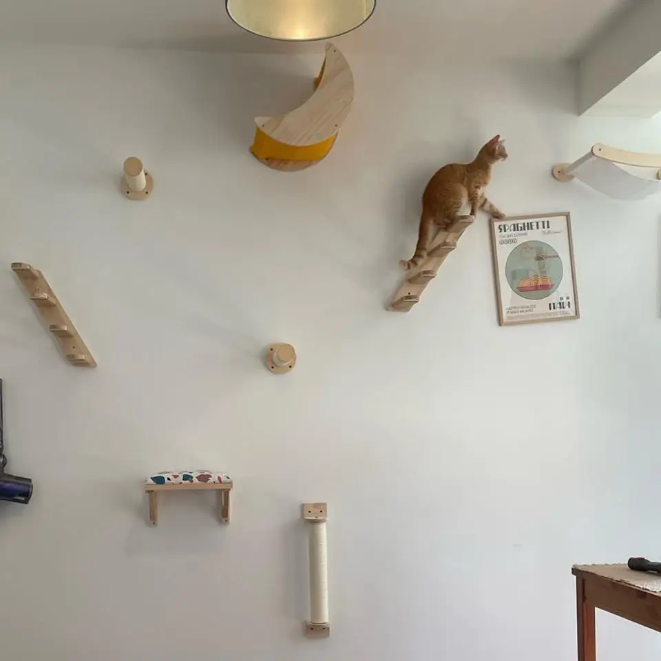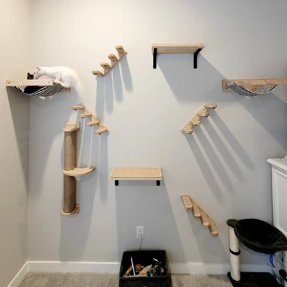 Estante para gatos, estantes de escalada de pared, poste rascador, hamaca, perchas para gatos, plataforma de salto de árbol para gatos, muebles de pared de madera para mascotas para interiores
