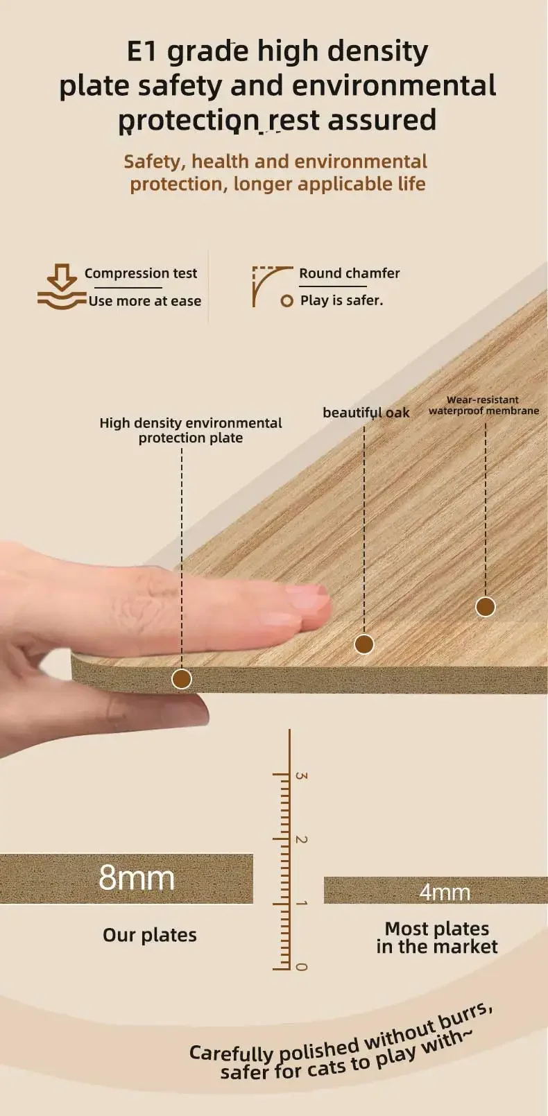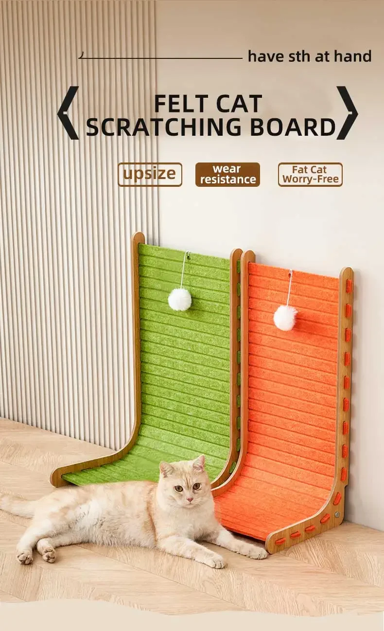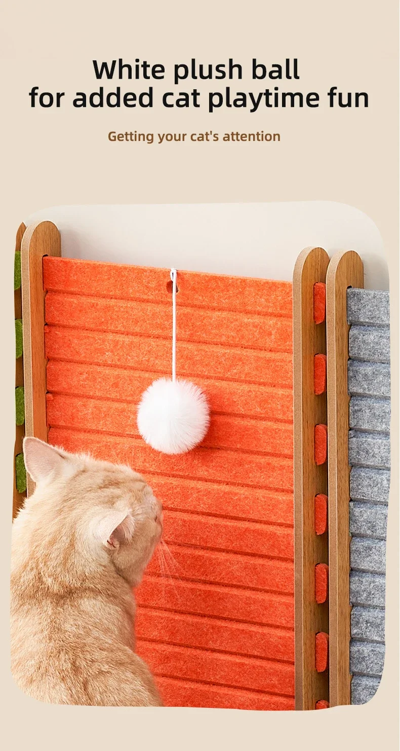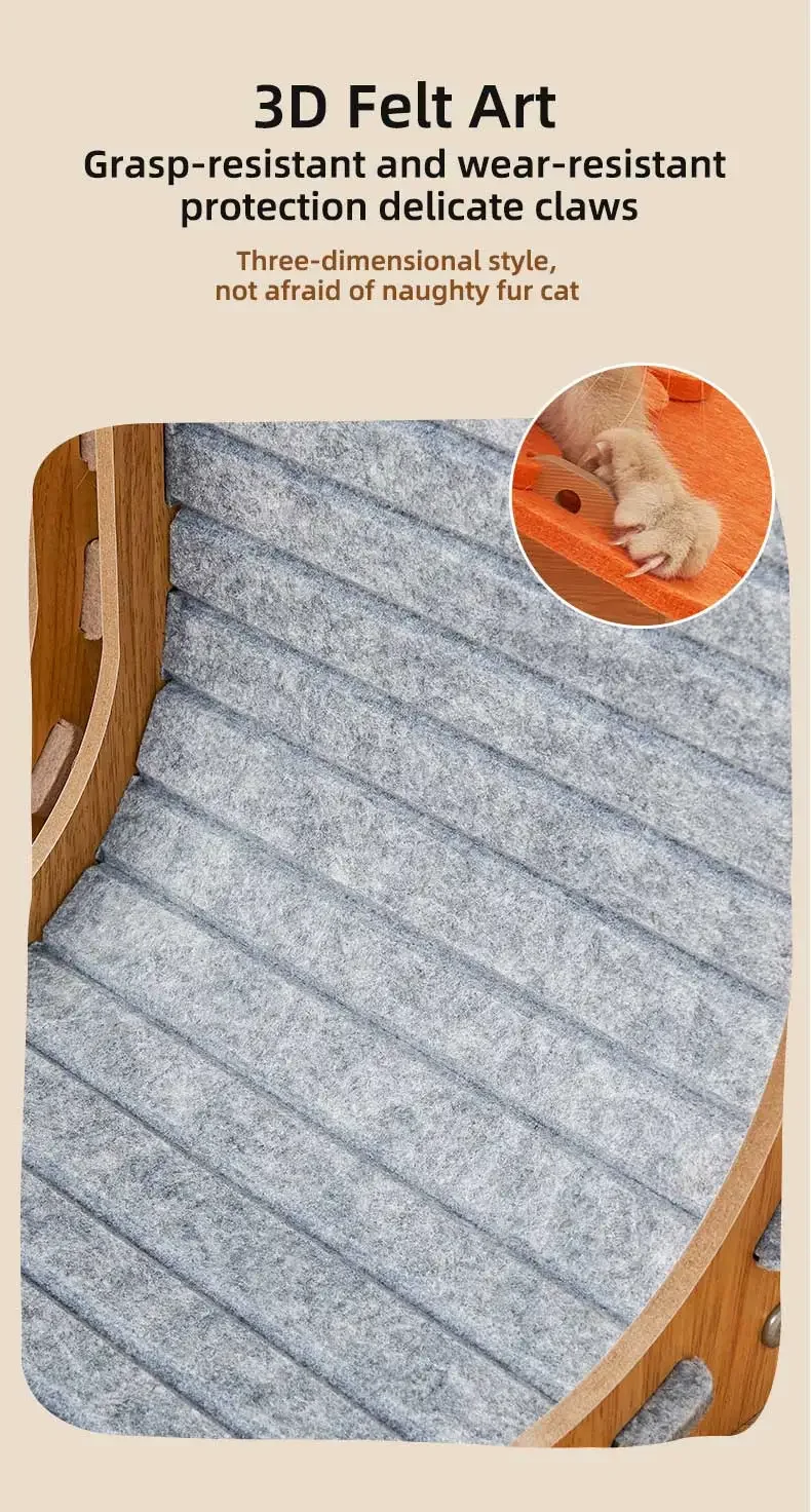 【Material】 El rascador para gatos está hecho de fieltro y madera, que es cómodo, de buena durabilidad y duradero.