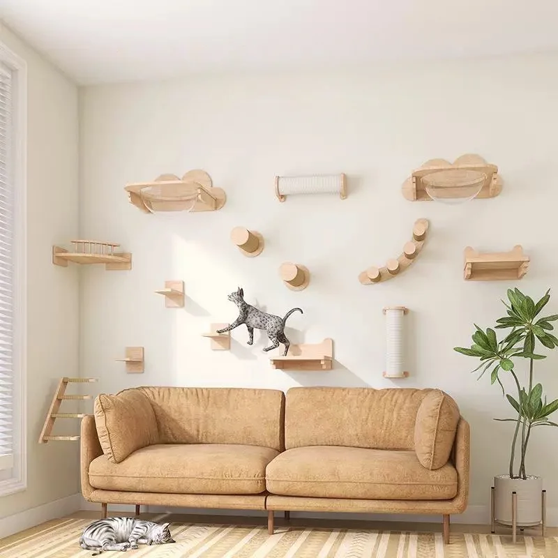 Se pueden combinar e instalar de manera flexible según el espacio de la pared, el diseño del hogar y los hábitos de actividad del gato. Ya sea una unidad pequeña compacta o un espacio grande y espacioso, se puede planificar inteligentemente para aprovechar al máximo el espacio vertical y crear un parque de atracciones exclusivo para gatos único, sin ocupar demasiado espacio en el suelo y mantener limpio el hogar.