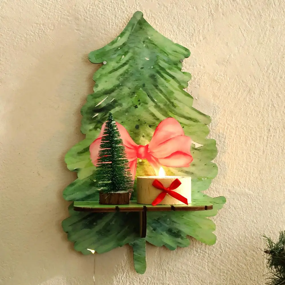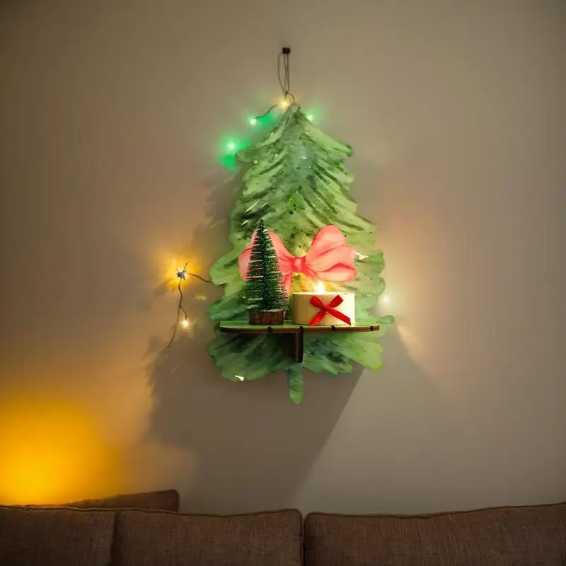 1.Festive Tree Atmosphere: Enhance your holiday decor with our Christmas floating shelves, boasting a simple yet interesting design in green, complemented by cute bow decorations that bring to mind a festive tree
