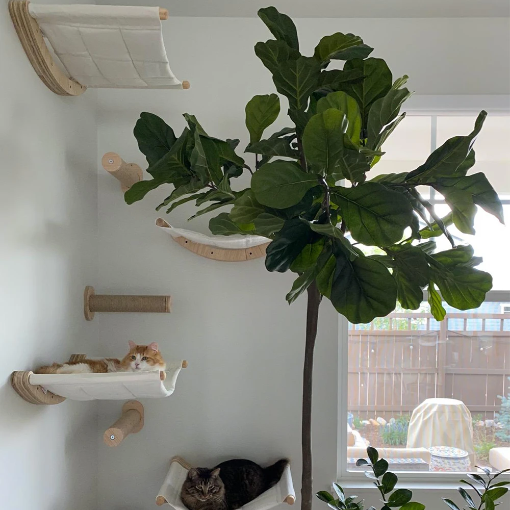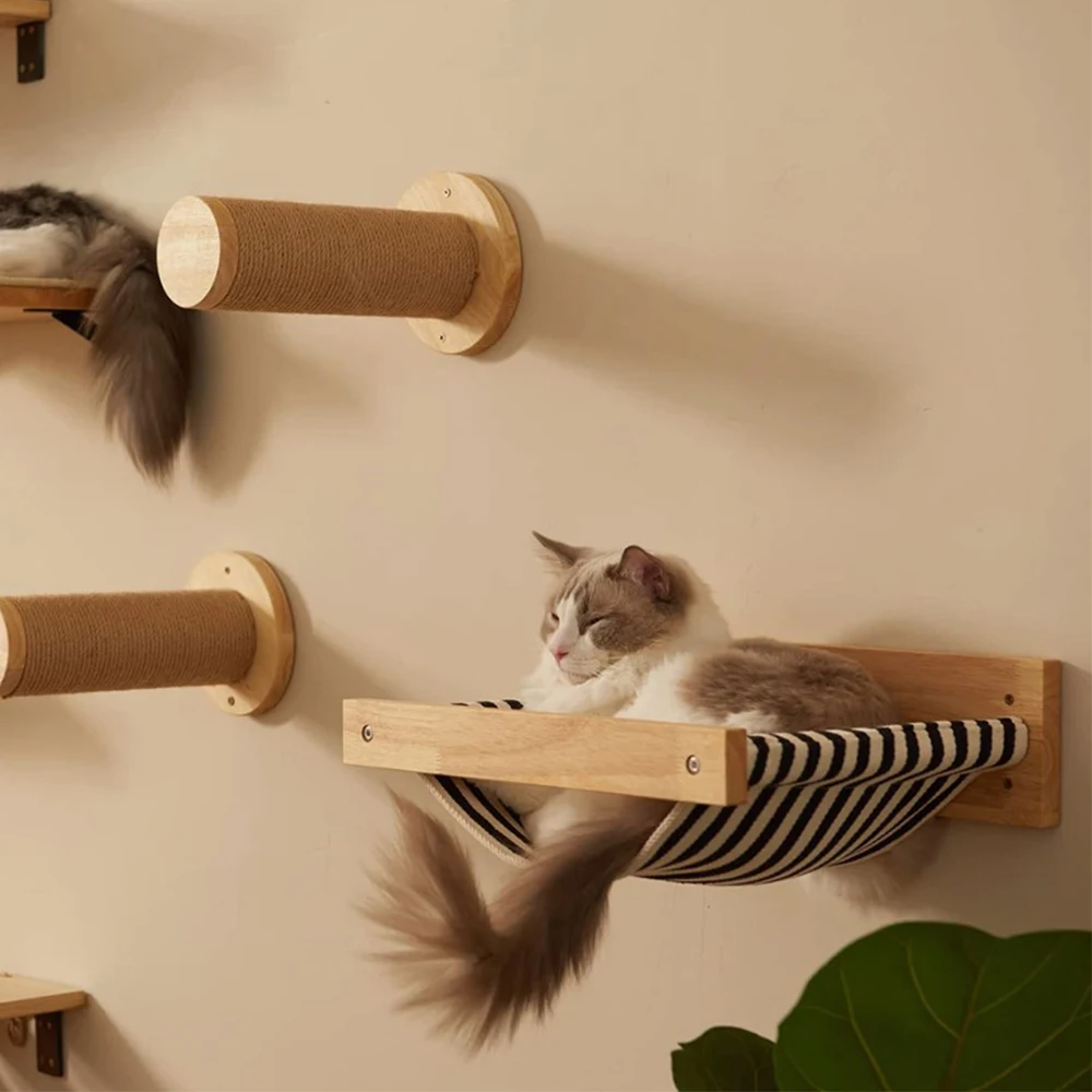 Estantes para gatos montados en la pared, estante de escalada de madera para gatos, muebles de árbol de escalada en la pared para gatitos, hamaca para gatos de interior con escalera de cuatro escalones