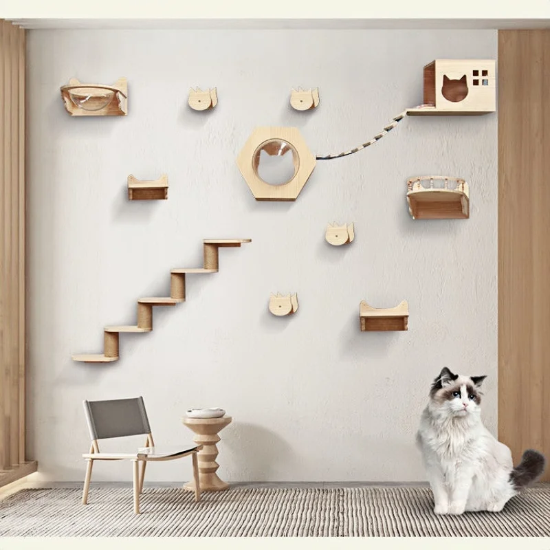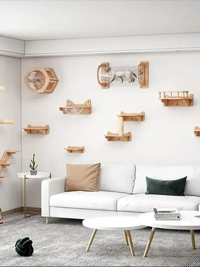 Madera maciza natural, la elección de la salud:La madera maciza natural seleccionada de alta calidad, con una textura resistente y duradera, proporciona espacio de descanso y juego estable y confiable para los gatos.Madera sin aditivos químicos, segura y respetuosa con el medio ambiente, protegiendo la salud de los gatos.El estilo simple y natural de madera maciza, combinado con varios estilos de decoración del hogar, no solo es un mueble exclusivo para gatos, sino también un punto culminante de la decoración del hogar.