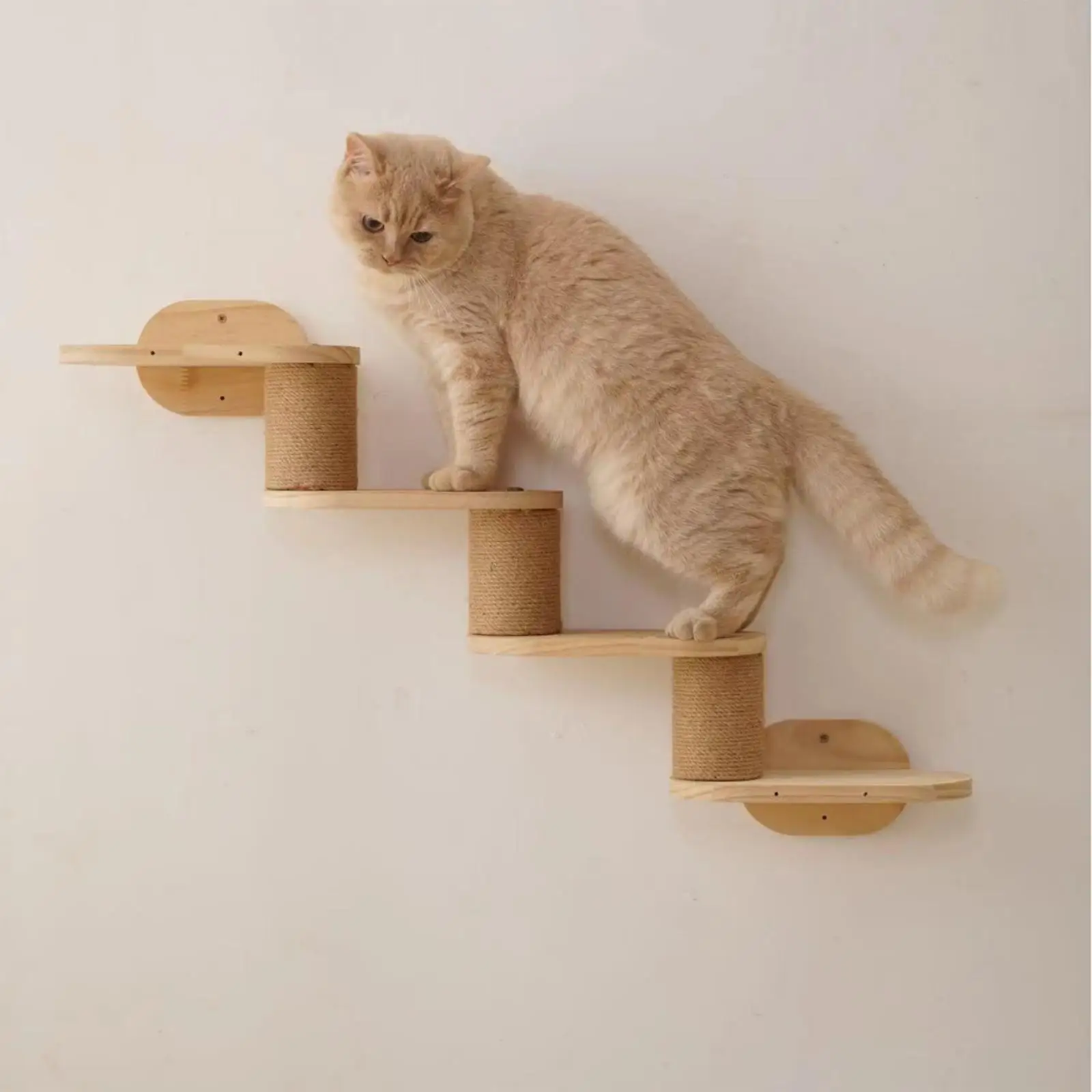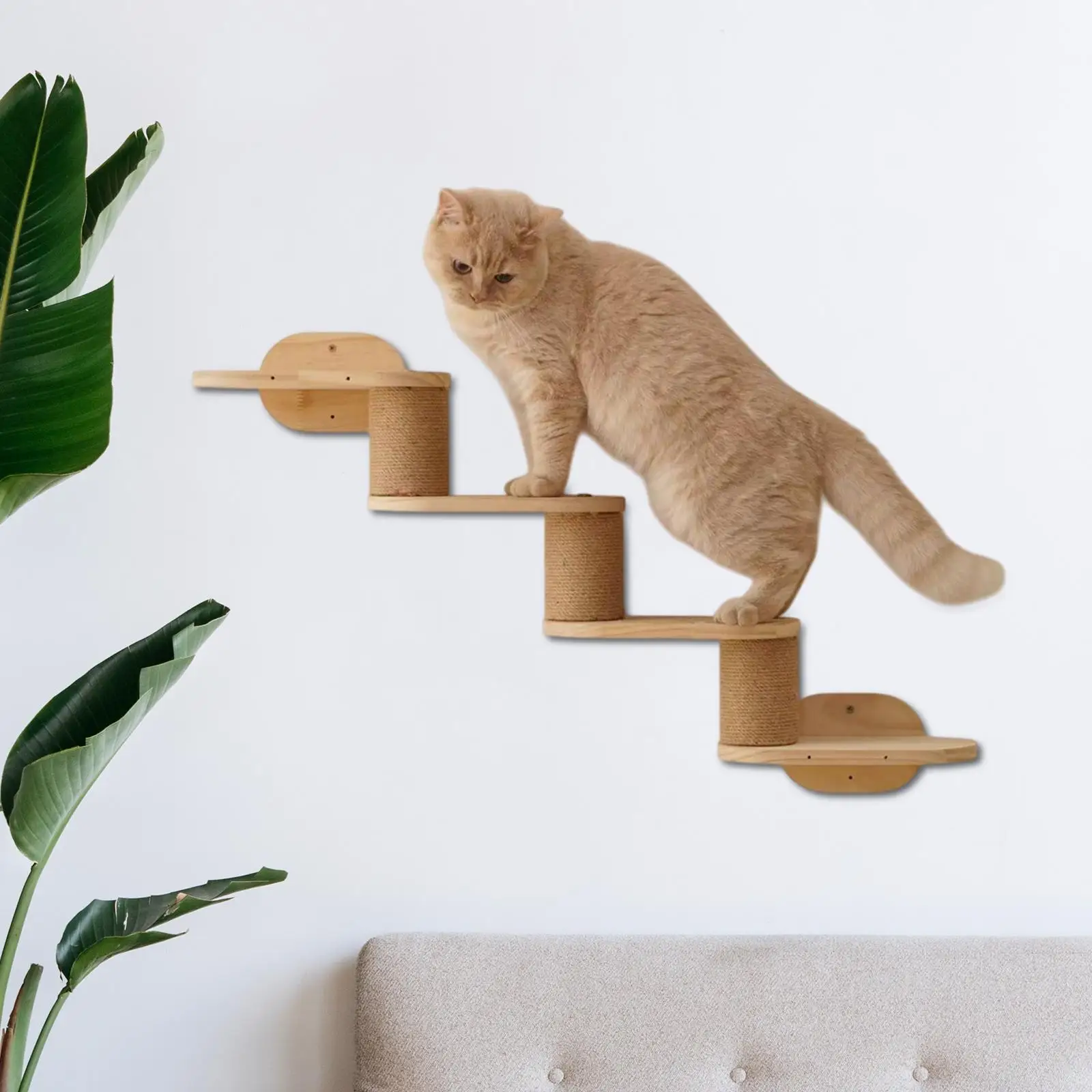 【Diseño que ahorra espacio】: el escalador para gatos con escalones de pared de madera ayuda a mantener su hogar ordenado y organizado, diseño montado en la pared, ahorro de espacio
