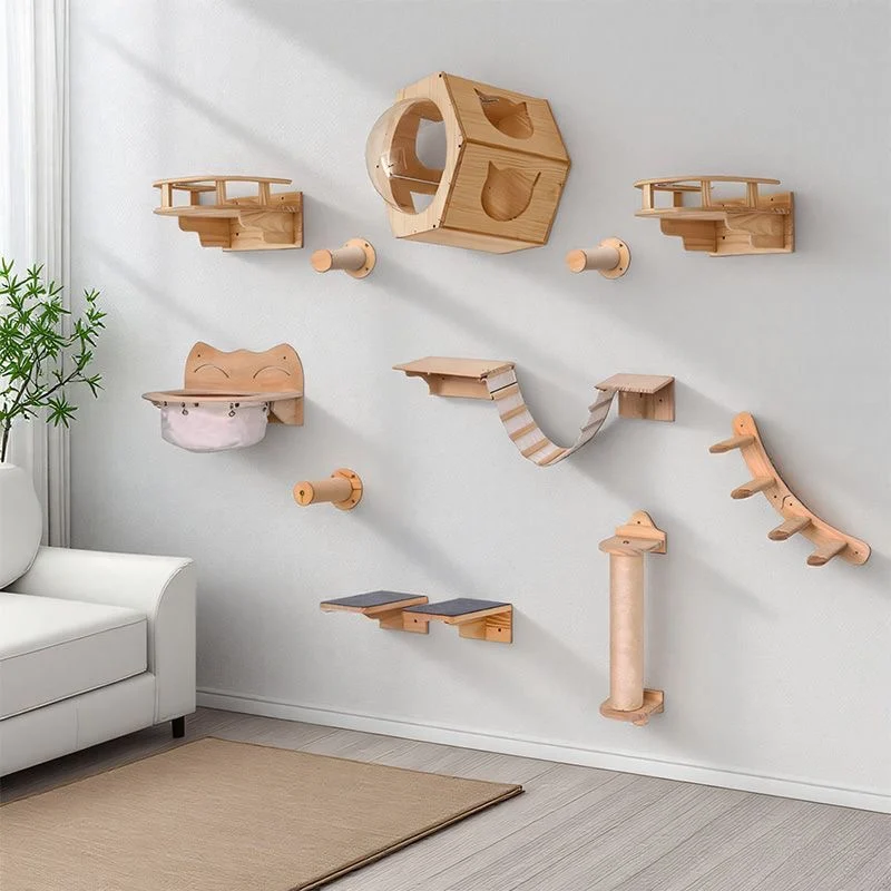 El diseño montado en la pared ahorra espacio en su habitación y es muy adecuado para escalar, dormir y hacer ejercicio.Apto para gatos de todas las edades.