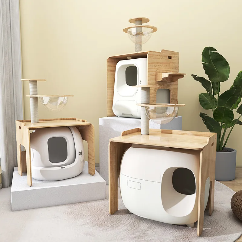 Inodoro de madera maciza para gatos, caja de arena para gatos
