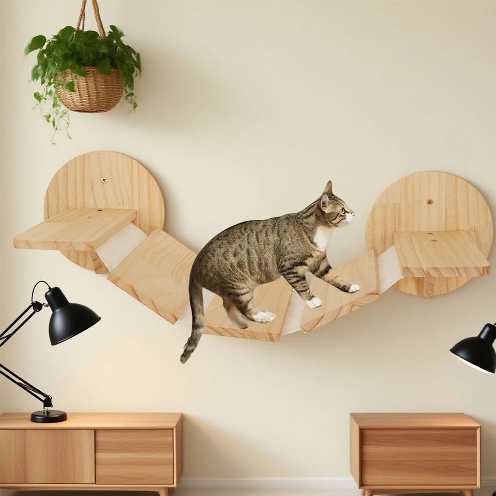 El puente de suspensión para gatos proporciona un entorno seguro y atractivo para los gatos. Jugar y explorar en el puente proporciona una distracción, ayuda a aliviar el estrés y reduce los comportamientos causados por el aburrimiento o la ansiedad, como rascar muebles y los ladridos excesivos.