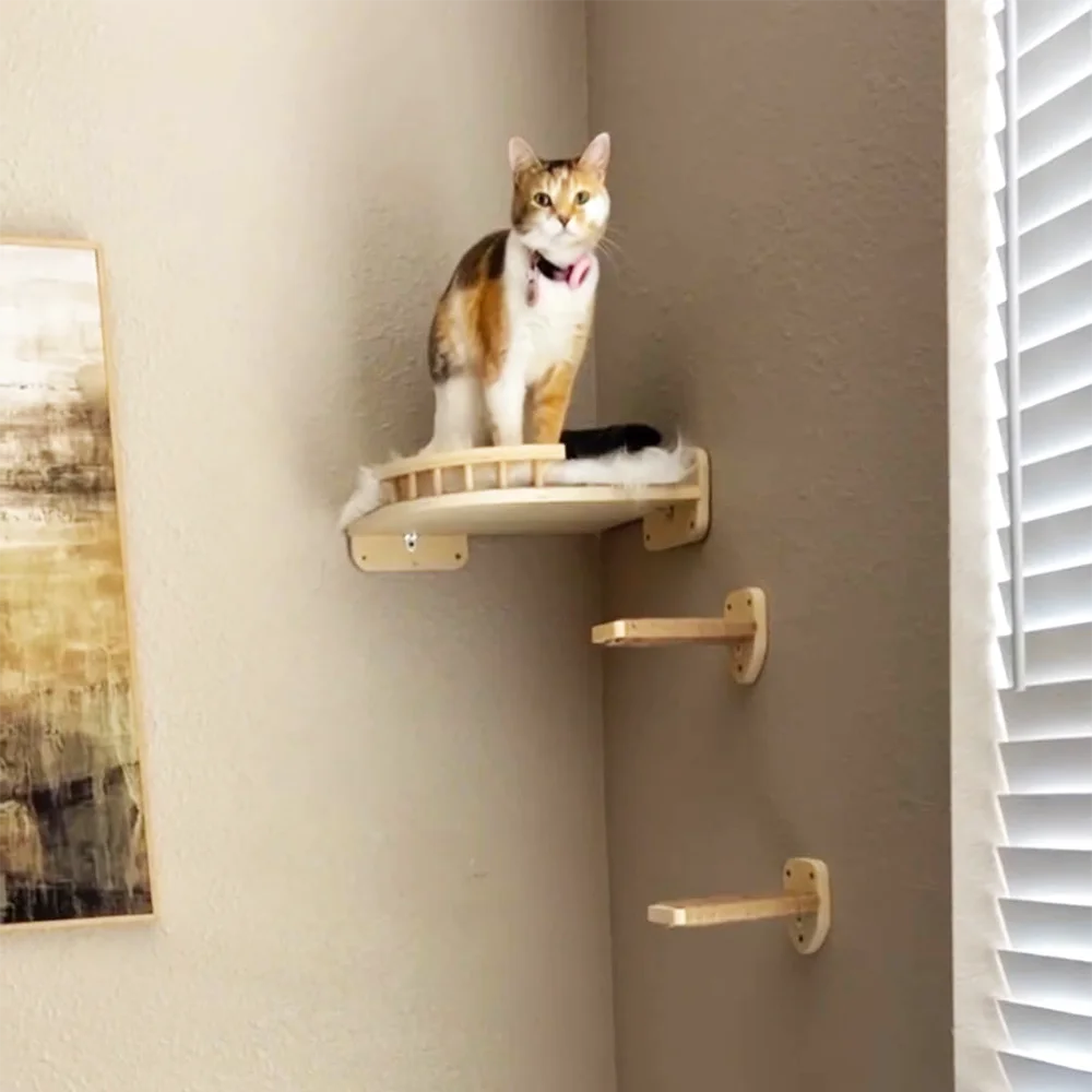 Los gatos nacen a amar saltar y explorar. Nuestras instalaciones de escalada ricas y diversas pueden animarlas a explorar, promover el ejercicio, aliviar el estrés y mantenerse saludables. Los estantes de pared permiten a los gatos observar el entorno desde arriba y obtener una sensación de control y seguridad.