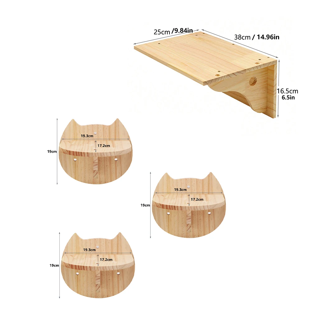 Nuestros escalones de pared para gatos tienen forma de gato, que es muy lindo y divertido.Las hamacas para gatos de interior son de madera robusta y se pueden combinar con cualquier estilo de hogar.Puedes instalarlo en el salón, dormitorio, etc.