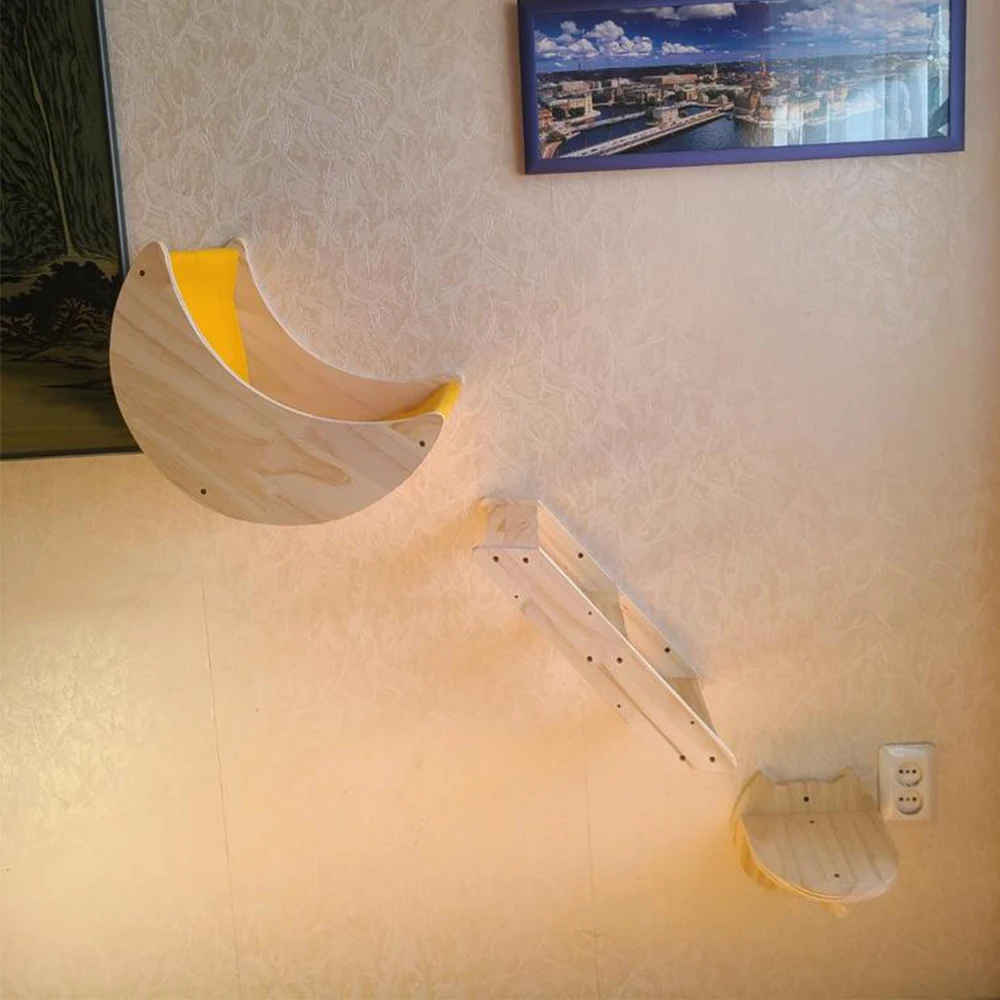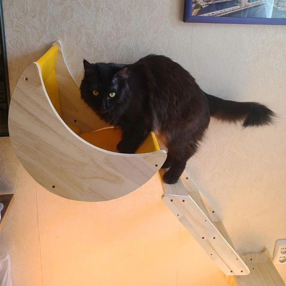 Estantes de pared para gatos, hamaca lunar, poste para rascar montado en la pared con paso, hojas de escalada para gatos, muebles de pared de madera para gatos durmiendo