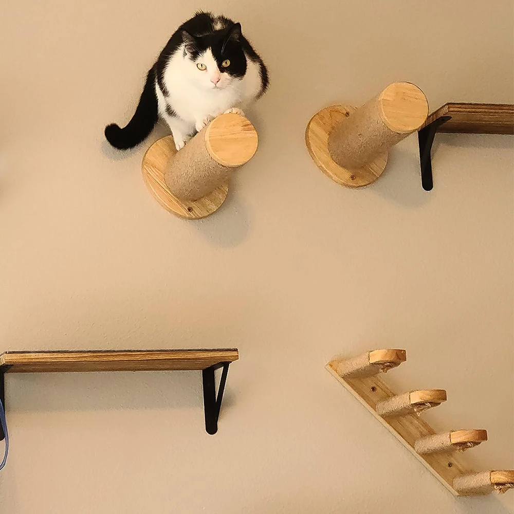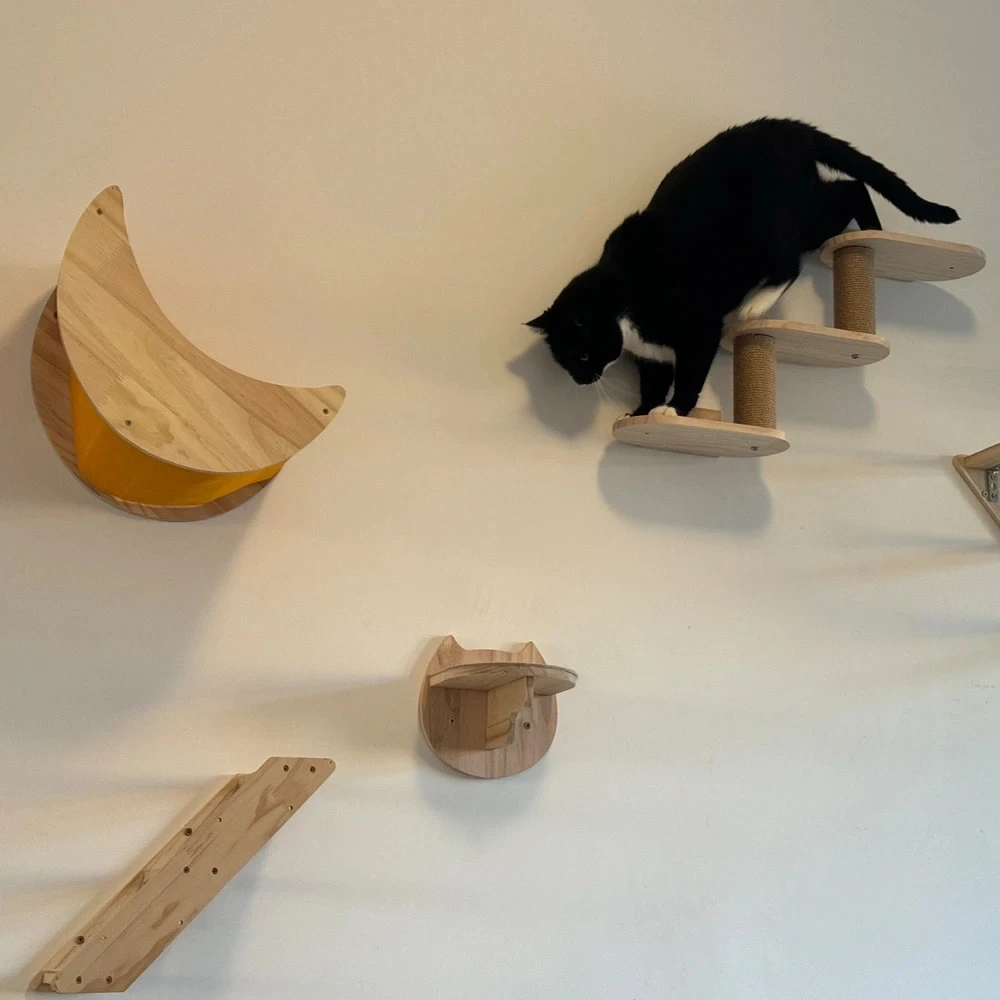 El diseño montado en la pared utiliza inteligentemente el espacio de la pared sin ocupar espacio en el piso, lo que hace que el ambiente del hogar esté más ordenado y ordenado. Su apariencia simple y creativa puede combinarse perfectamente con varios estilos de decoración del hogar, ya sea un estilo minimalista moderno, un estilo nórdico o un estilo pastoral, puede convertirse en un paisaje único en el hogar. Los gatos que se mueven sobre soportes para gatos pueden agregar más vitalidad y diversión a la vida hogareña.