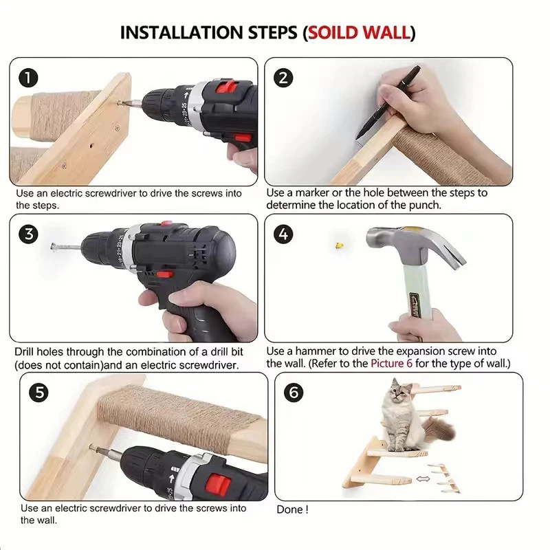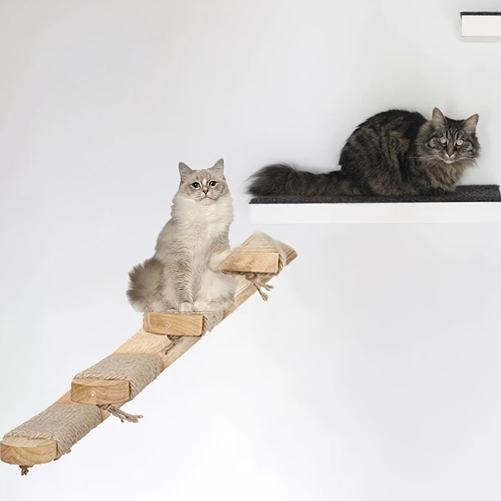 Estantes de pared para gatos de madera maciza de 4 niveles con yute para rascar, muebles de pared para escalar gatos, diseño Vertical que ahorra espacio para gatos de interior