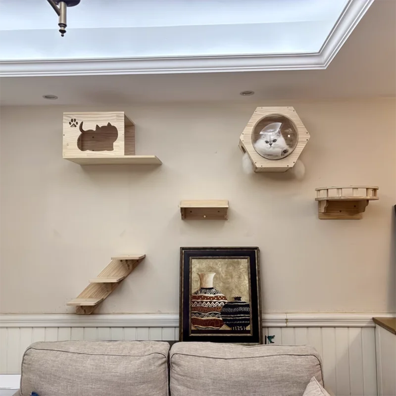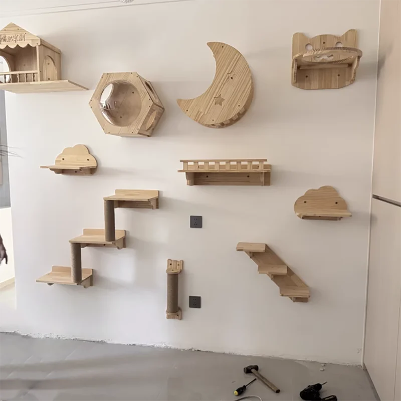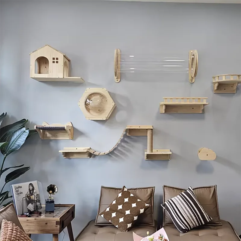 Se pueden combinar e instalar de manera flexible según el espacio de la pared, el diseño del hogar y los hábitos de actividad del gato. Ya sea una unidad pequeña compacta o un espacio grande y espacioso, se puede planificar inteligentemente para aprovechar al máximo el espacio vertical y crear un parque de atracciones exclusivo para gatos único, sin ocupar demasiado espacio en el suelo y mantener limpio el hogar.