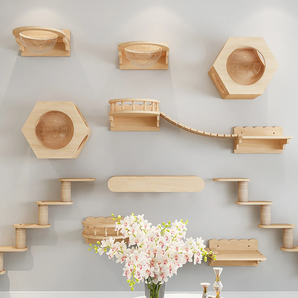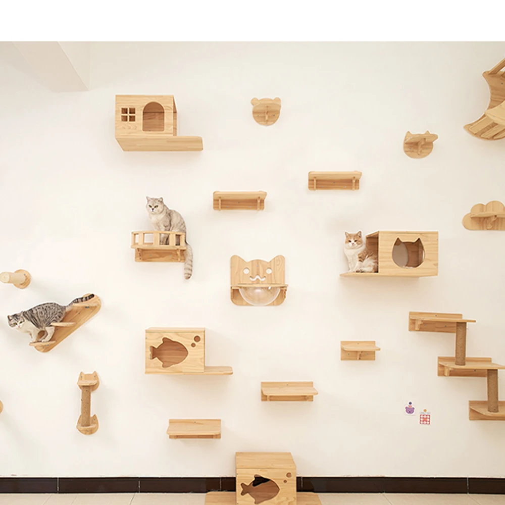 Nuestros estantes de pared para gatos cuentan con un elegante diseño de escalón en forma de gato y casas con temática de gatos que capturan perfectamente la esencia de su compañero felino, al mismo tiempo que brindan un espacio acogedor y confortable para su amado gato.