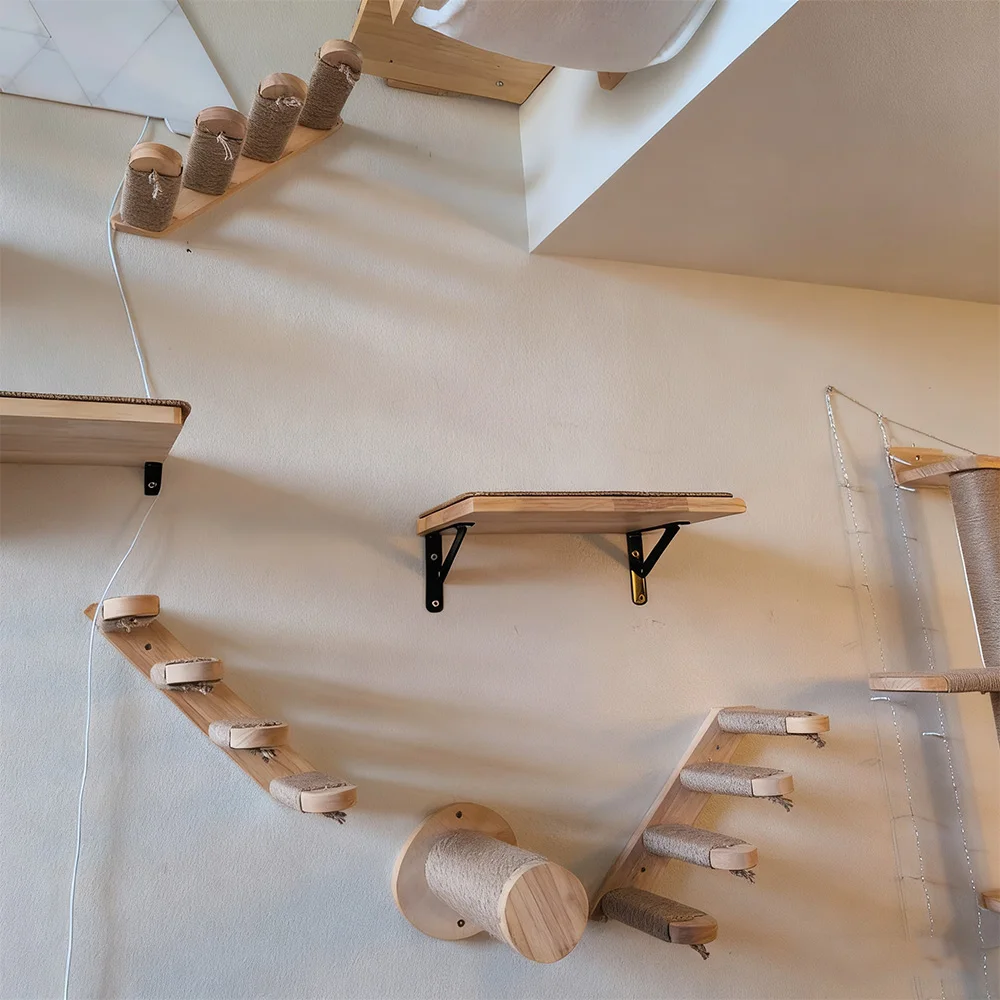 Los estantes de pared para gatos se adaptan al hábito de los gatos de escalar, aumentan el ejercicio y reduciendo la posibilidad de obesidad, lo que es bueno para la salud.Además, le da a los gatos espacio para escalar y evitar estropear la casa.