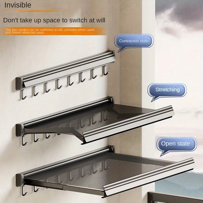 *Diseño plegable: No ocupa espacio cuando está inactivo, se puede contraer fácilmente en un segundo.Cuando no está en uso, está a solo 2,6 cm de distancia de la pared después de encogerlo, lo que es verdaderamente invisible y ahorra espacio.