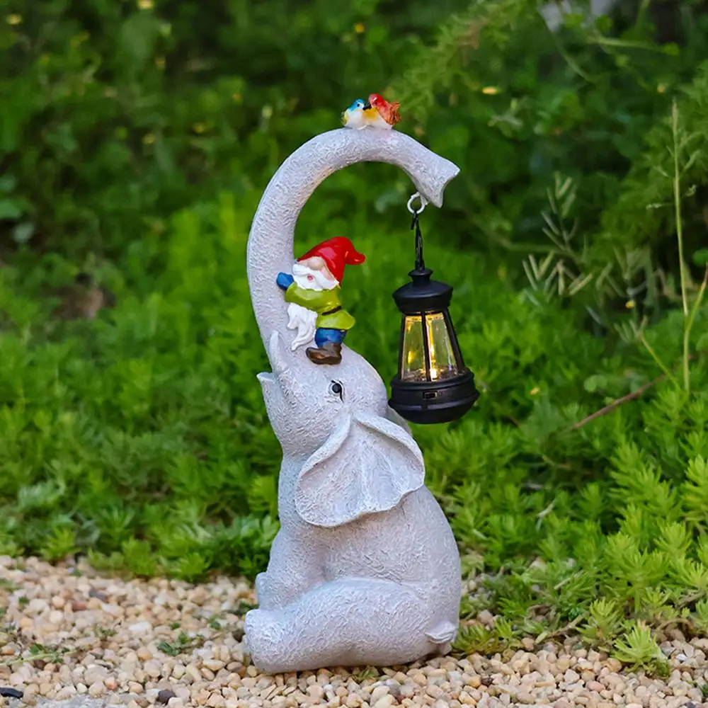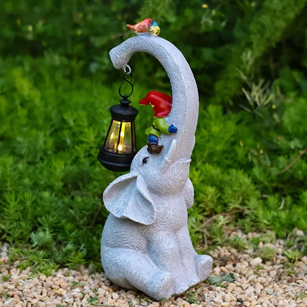 1. Decoración artística de elefante: mejora los espacios al aire libre con un diseño de elefante distinto que combina arte y funcionalidad mientras cuenta con una linterna que funciona con energía solar para mejorar el ambiente del jardín o del patio de forma natural.