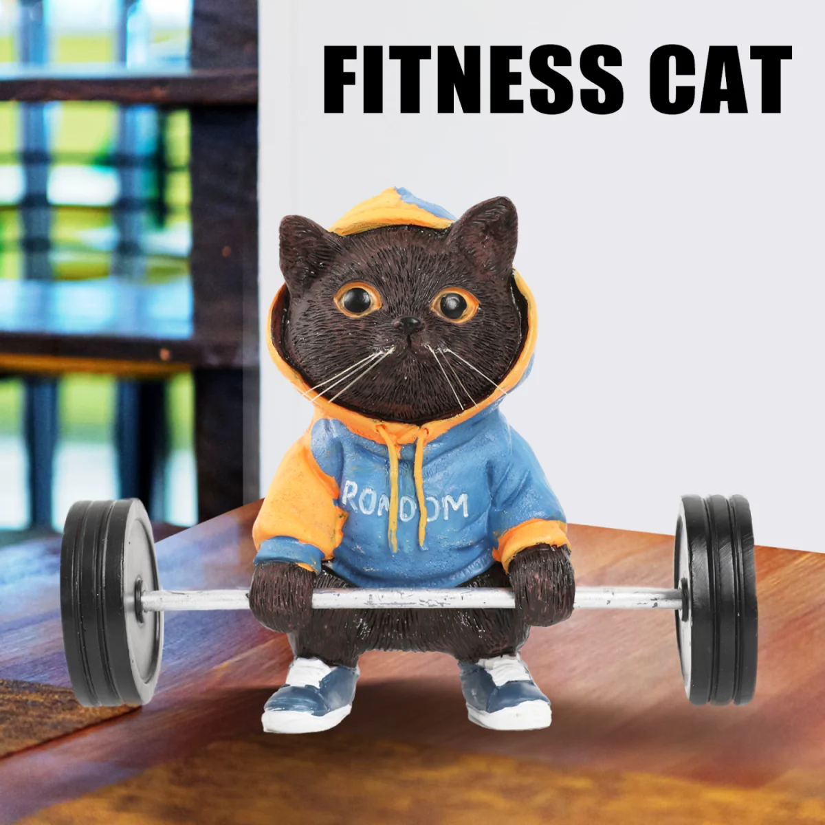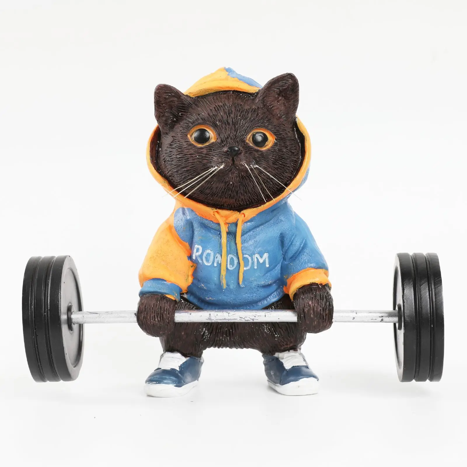 Estatua de gato de resina, escultura de gato de Fitness, figurita de gatito de levantamiento de pesas de resina para decoración de oficina en casa, adorno de estatua de dibujos animados