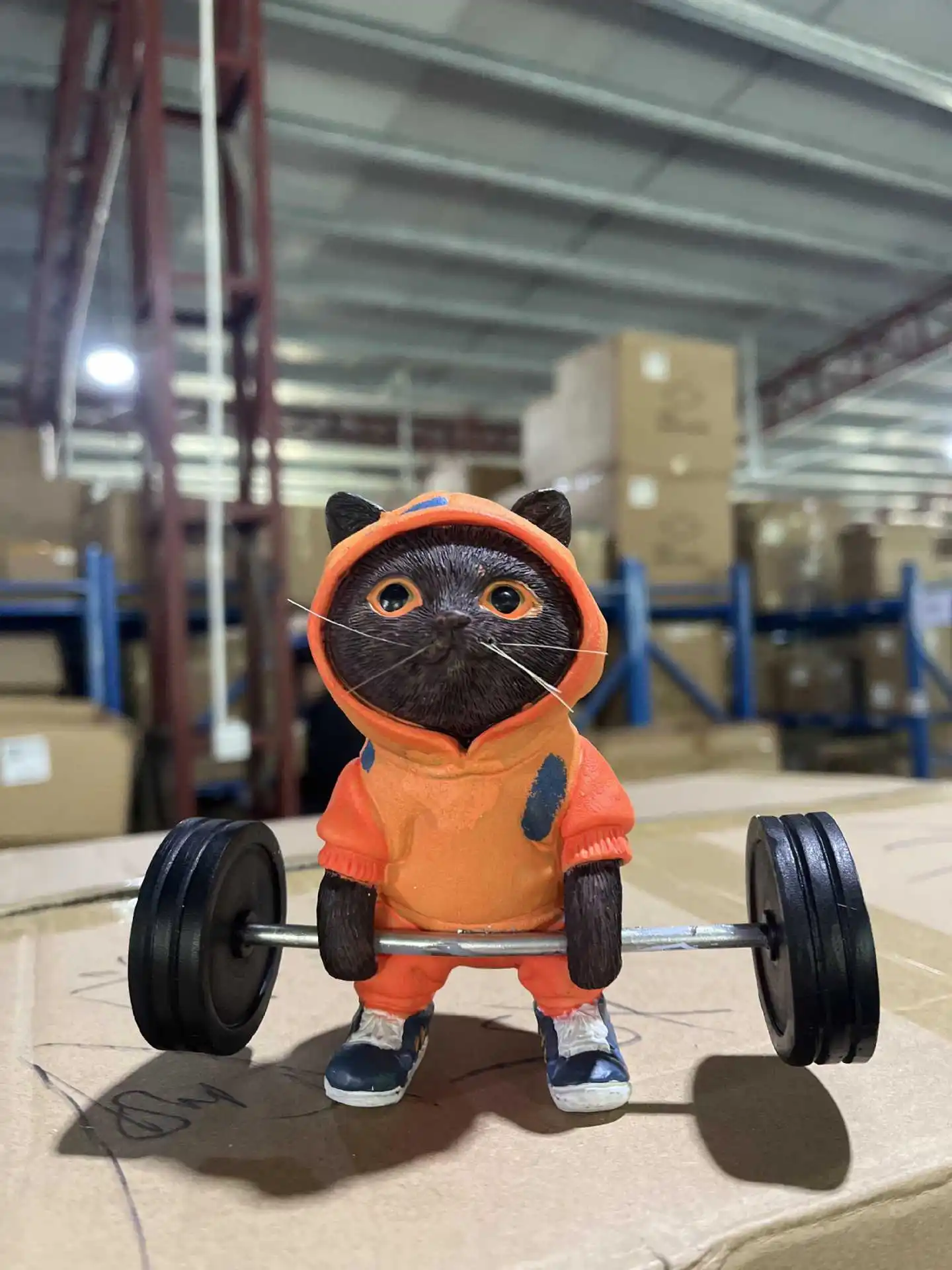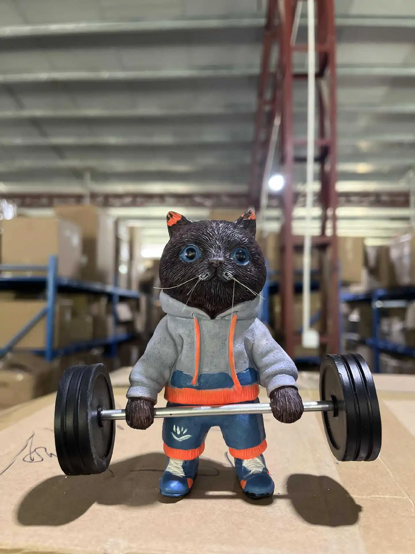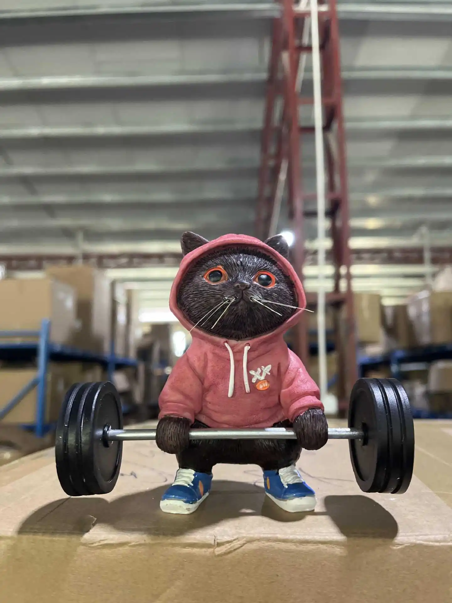 Características: forma de gato levantador de pesas, resistente, decoración del hogar.