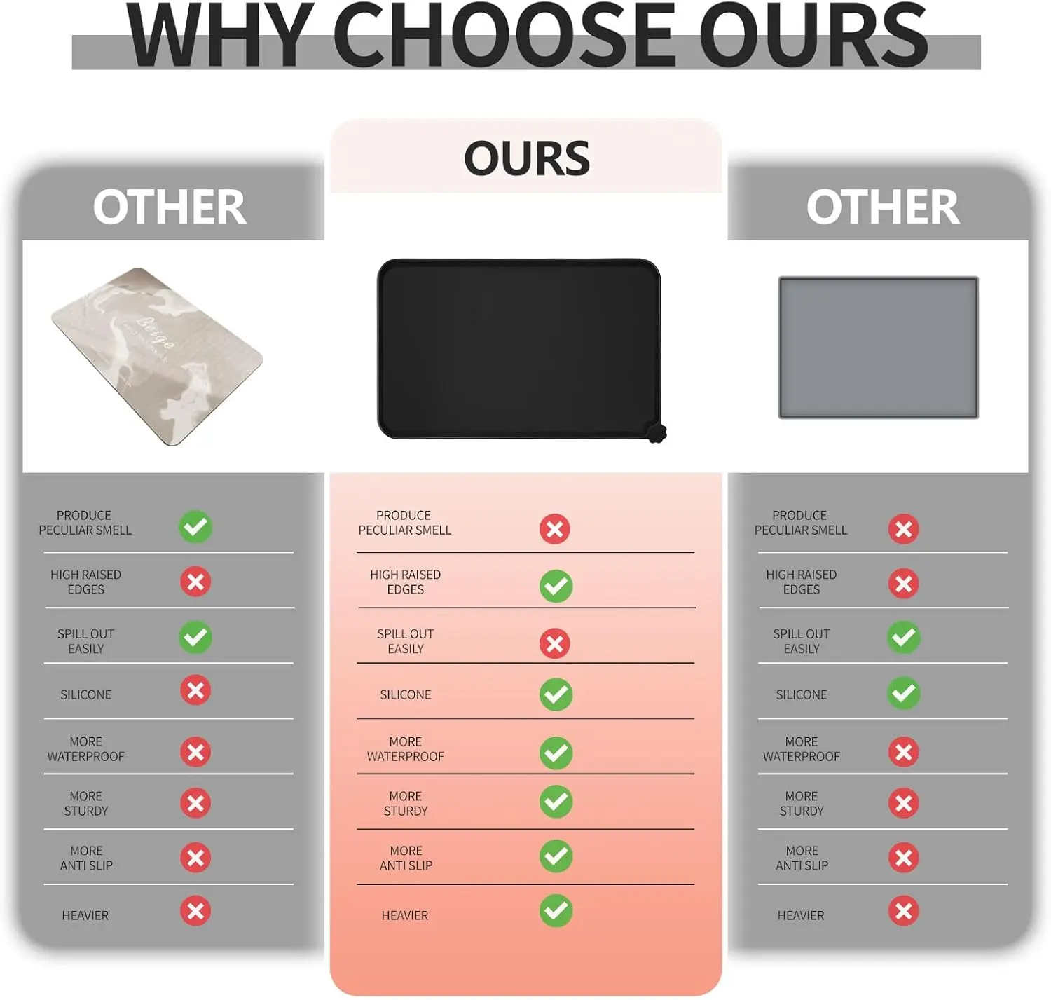 Estera de alimentación impermeable para mascotas con bordes elevados altos, cuenco de agua para perros y gatos con sin BPA, esteras de silicona de calidad alimentaria para perros y gatos