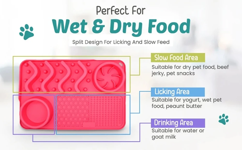 Alfombrilla de comedero lento multifuncional: se puede utilizar para aliviar la ansiedad y el aburrimiento en gatos, perros y otras mascotas pequeñas.