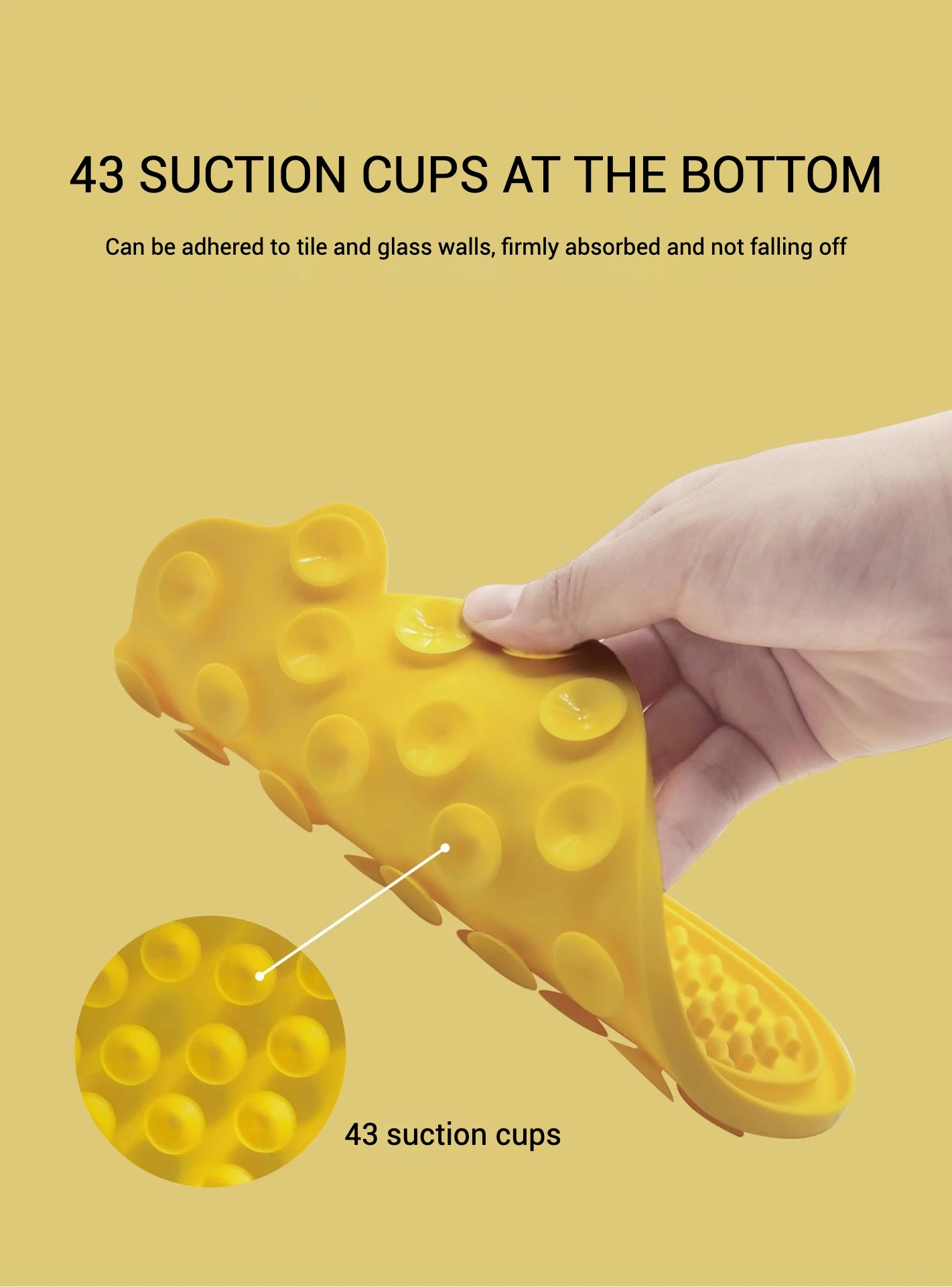 4. 🌟Ventosas fuertes para una colocación segura– Equipado con43 potentes ventosas, esta alfombra de alimentación se adhiere firmemente aazulejos, vidrio y otras superficies lisas, evitando resbalones o caídas durante la hora de comer.