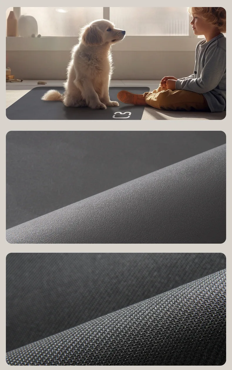 Si se derrama mucha agua traspasa el tapete, pero si es poca cantidad si la absorbe lo suficiente para evitar que pase al suelo.