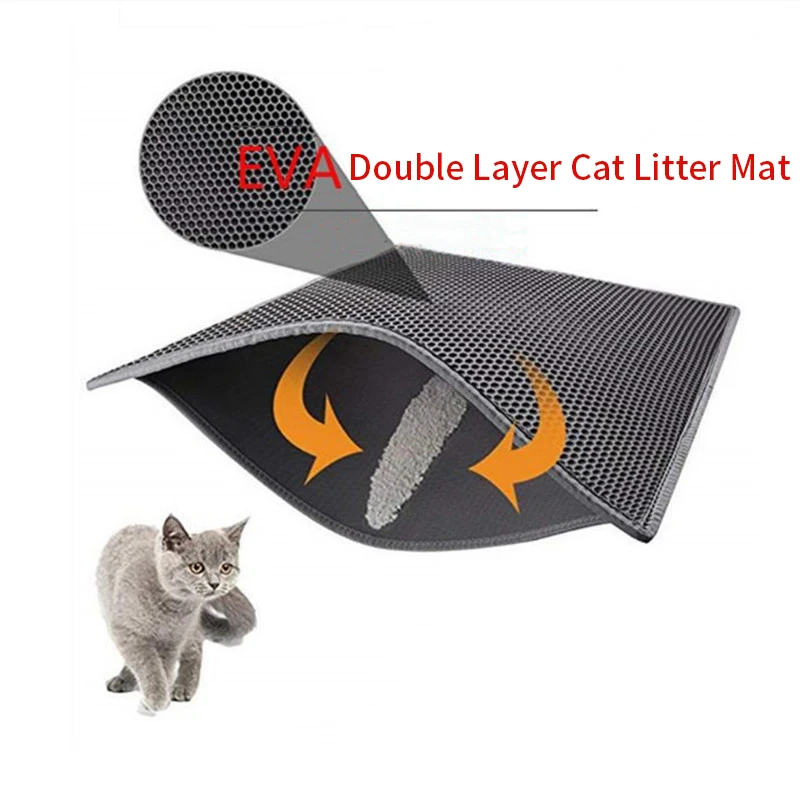 La alfombra está hecha de material EVA de doble capa, lo que la hace duradera, impermeable y fácil de limpiar. Tiene un diseño de panal que atrapa la basura y evita que se rastree por toda la casa. La alfombrilla también tiene un fondo antideslizante que la mantiene firmemente en su lugar, incluso si su gato es un excavador entusiasta.