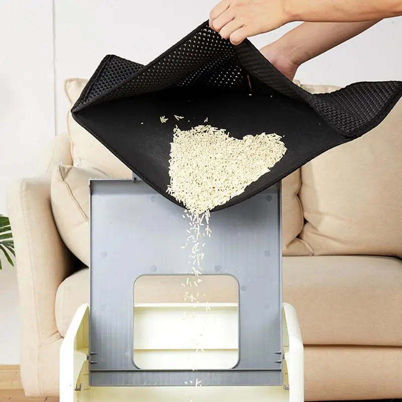The litter mat for cats boasts excellent design with upgraded materials and fine workmanship. It saves space and prevents litter from scattering, keeping your home clean.
