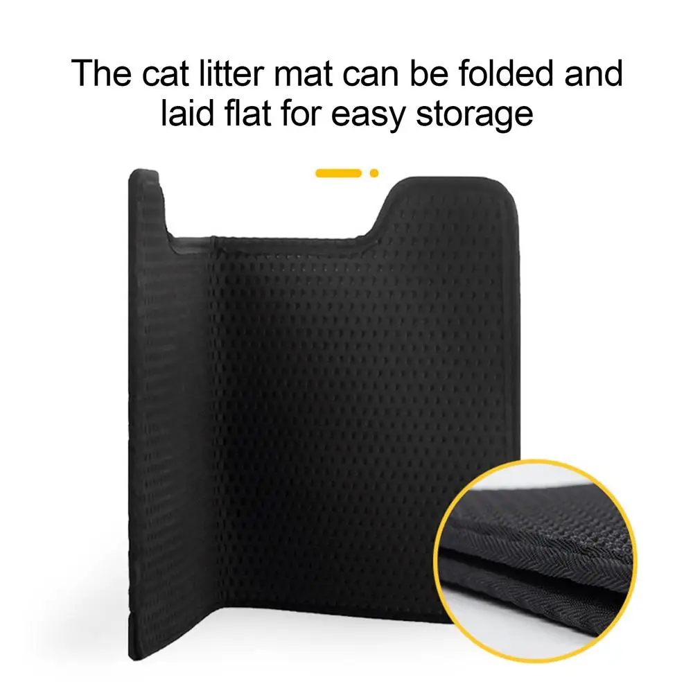 2.Convenient Organization: Expertly crafted with a U-shaped design, this mat easily fits next to your cat litter box and can be folded flat, making storage and organization convenient