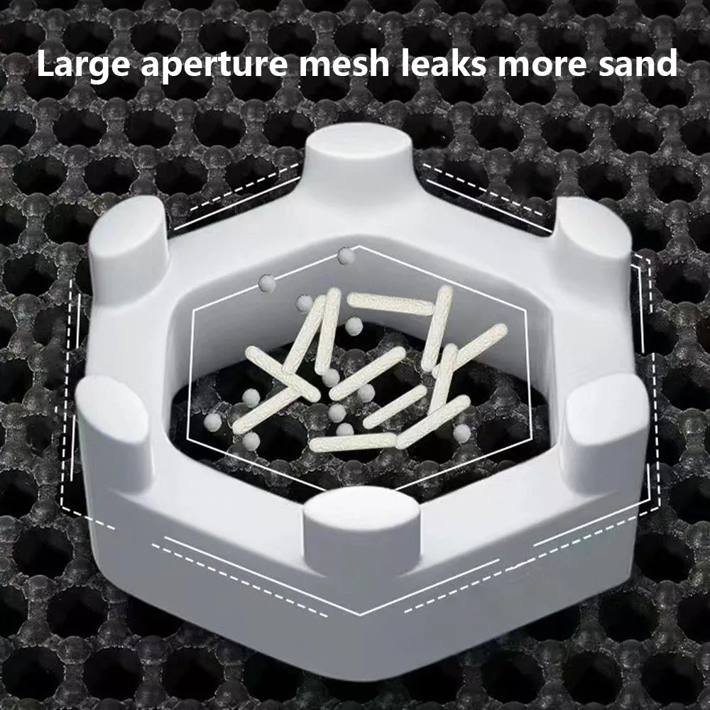 Estructura de doble capa: el diseño de alfombrilla de nido de abeja de doble capa le ayuda a recoger la basura. Solo necesita recoger la alfombra de la caja de arena y toda la basura se cae. Y luego volcarlo a la caja de arena para su reutilización.