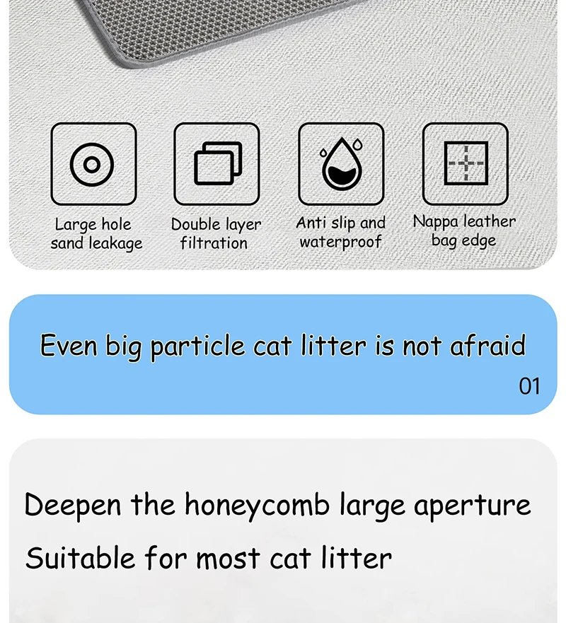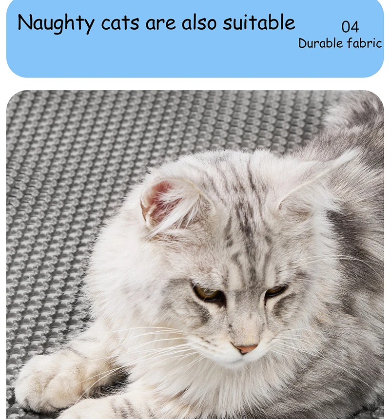 Un tapete de arena está diseñado para atrapar a su gato pequeños trozos de arena para gatos que salen de la caja.¡Es básicamente un felpudo para la caja de arena de tu gato!Estas alfombras ayudan a evitar que la basura se extienda por su hogar, manteniendo su espacio más limpio e higiénico al detener la posible propagación de bacterias.