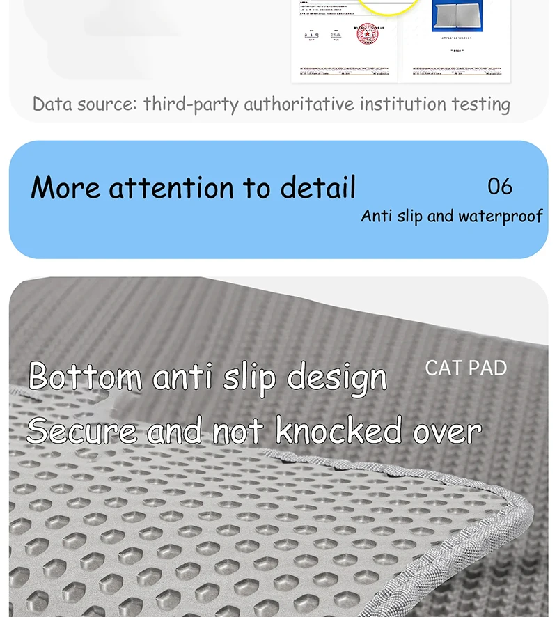 Cuando se trata de una alfombra de seguimiento de arena para gatos, el diseño es importante.Tener una colchoneta o una cerca que se integre directamente en la caja de arena crea una sensación perfecta, lo que hace que la caja de arena sea menos voltada.
