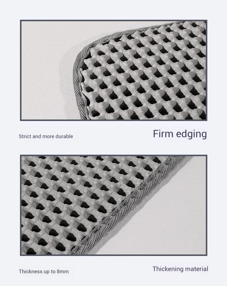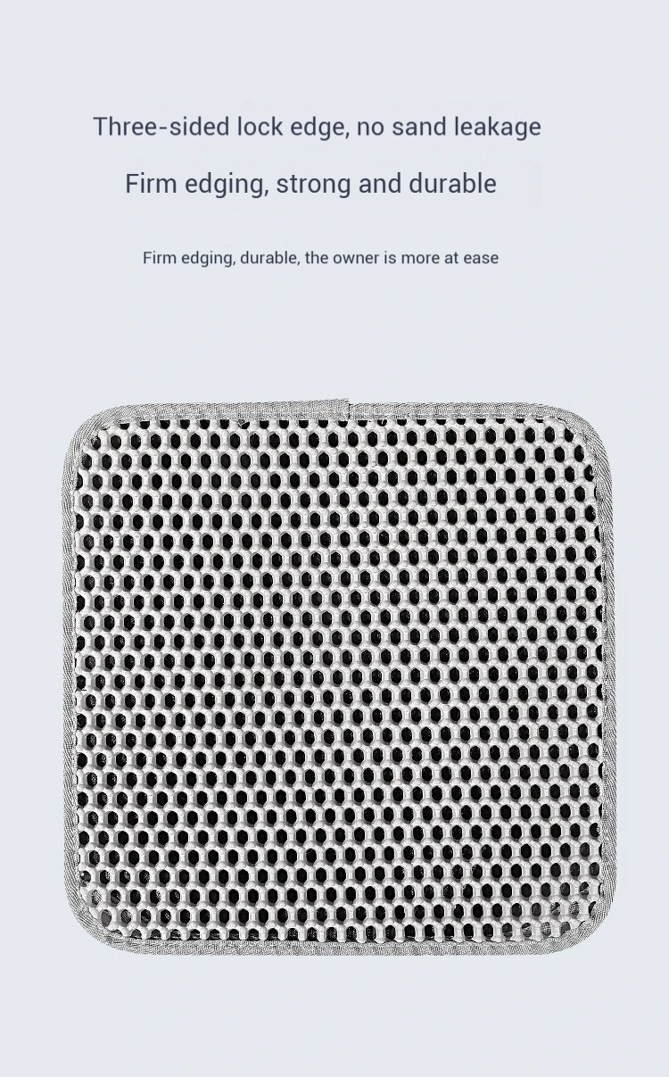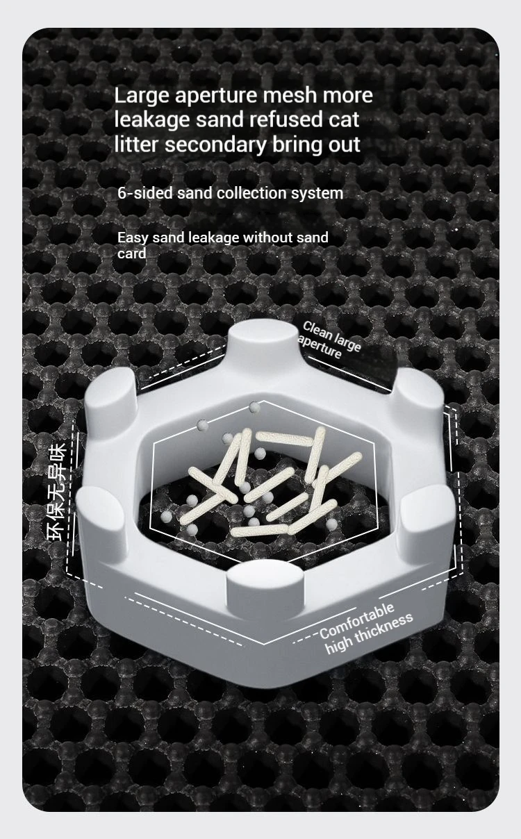 El cojín es muy adecuado para atrapar arena para gatos y garras delicadas.Nuestro suave material EVA es muy suave para las garras de gato sensibles.A los gatos incluso les gusta pisarlo o tomar una siesta por la tarde.El diseño de doble capa puede filtrar la arena para gatos y recogerla en la parte inferior.Agite suavemente para liberar la basura.